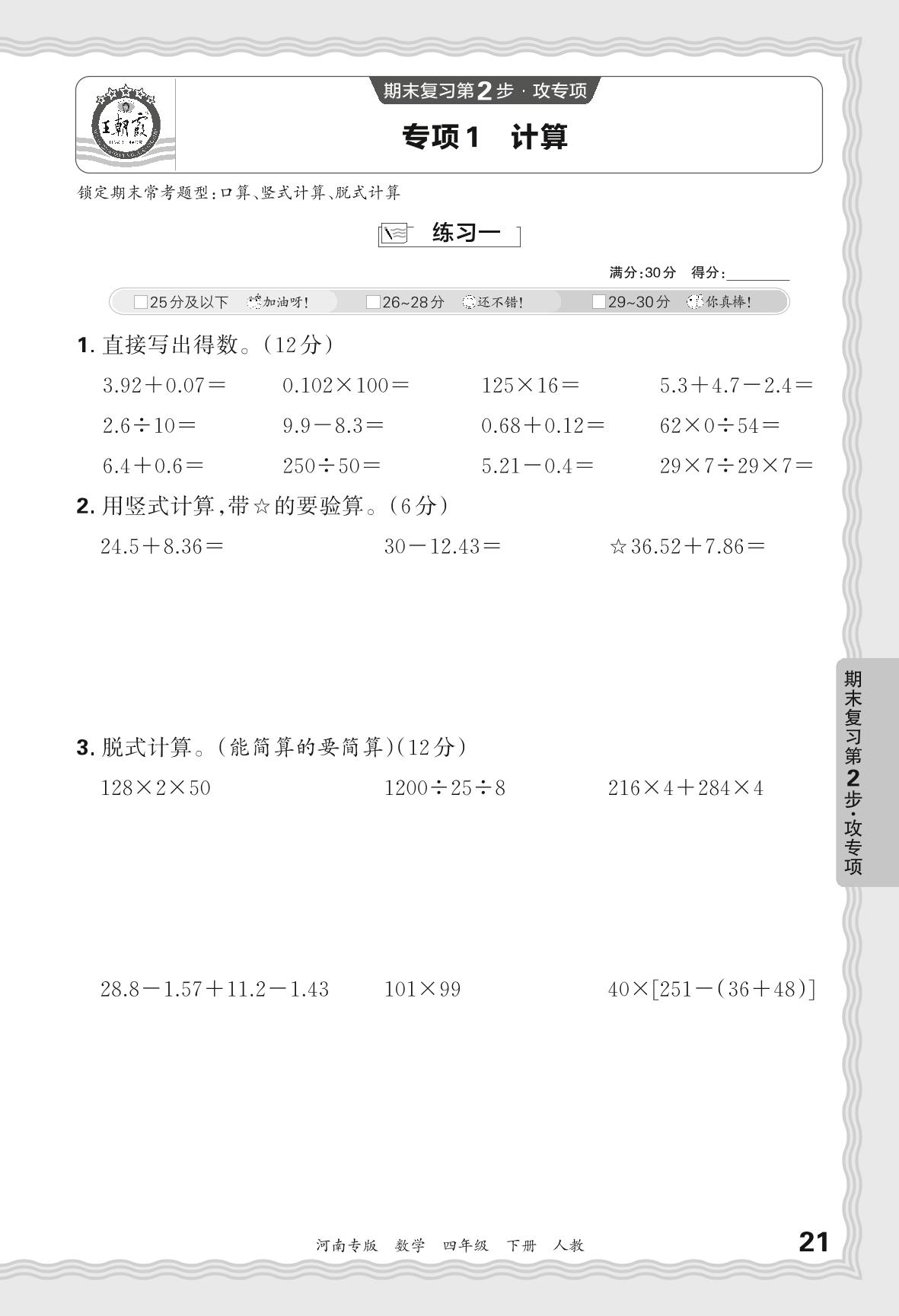 2024春下册四年级数学人教版 期末专项卷河南版·计算
