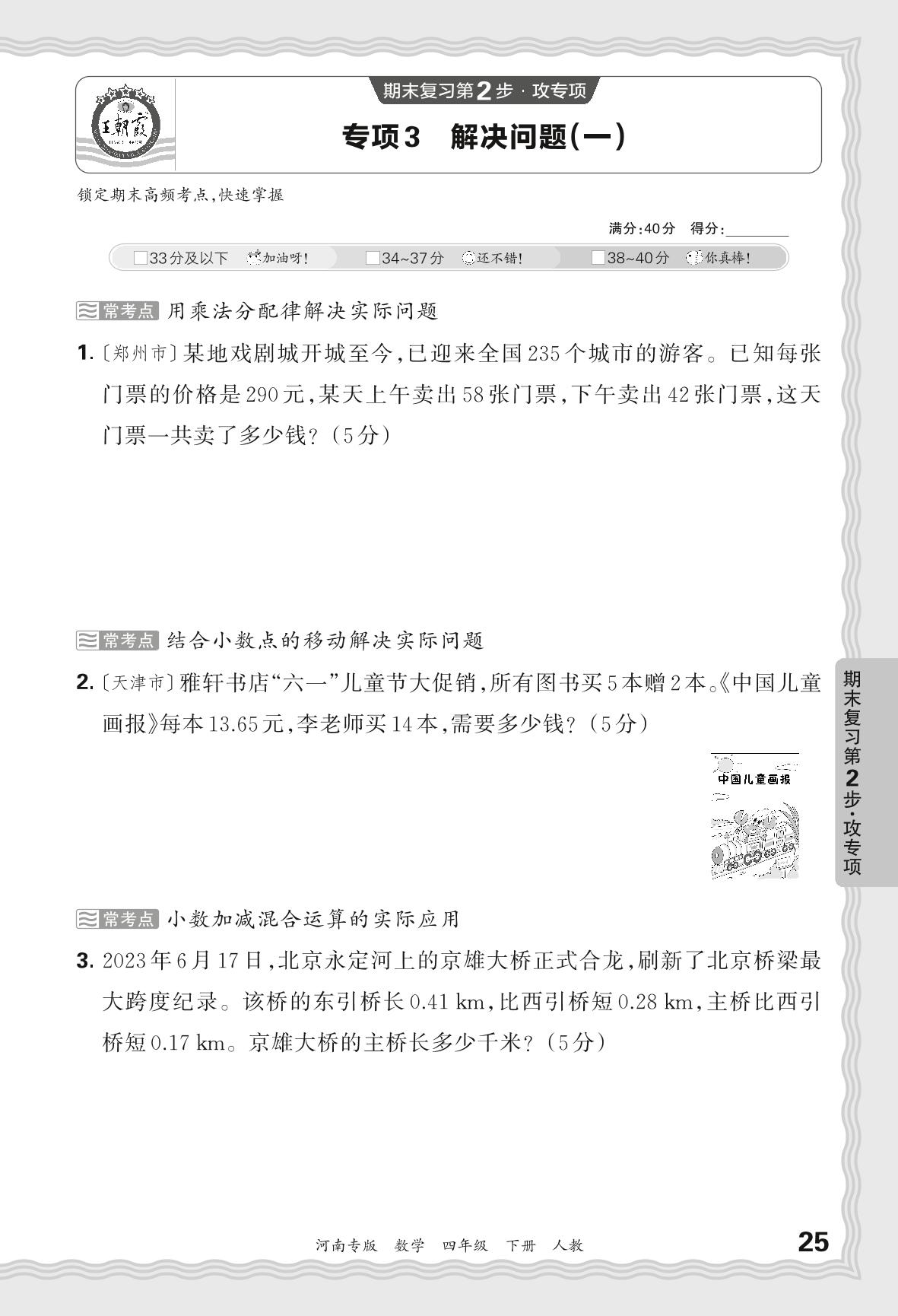2024春下册四年级数学人教版 期末专项卷河南版·解决问题(一)