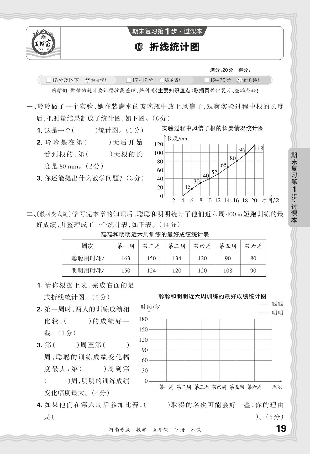 2024春下册五年级数学人教版 期末过课本河南版·折线统计图