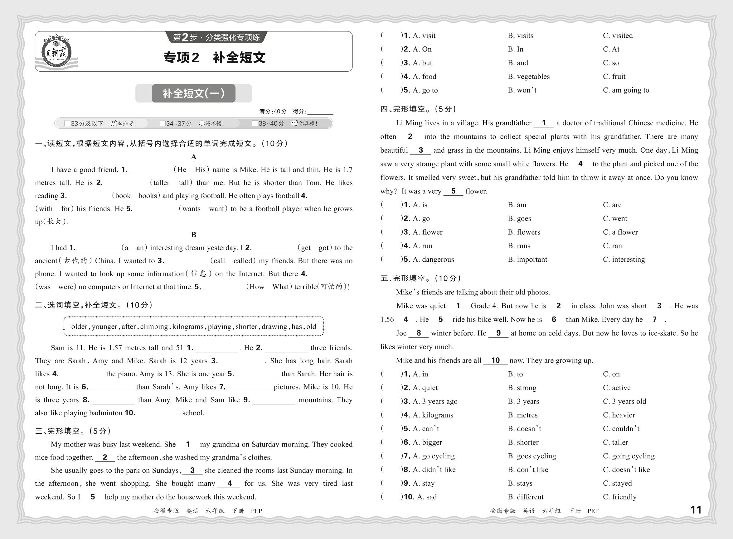 2024春下册六年级英语人教PEP版 期末专项卷安徽版·补全短文【2】