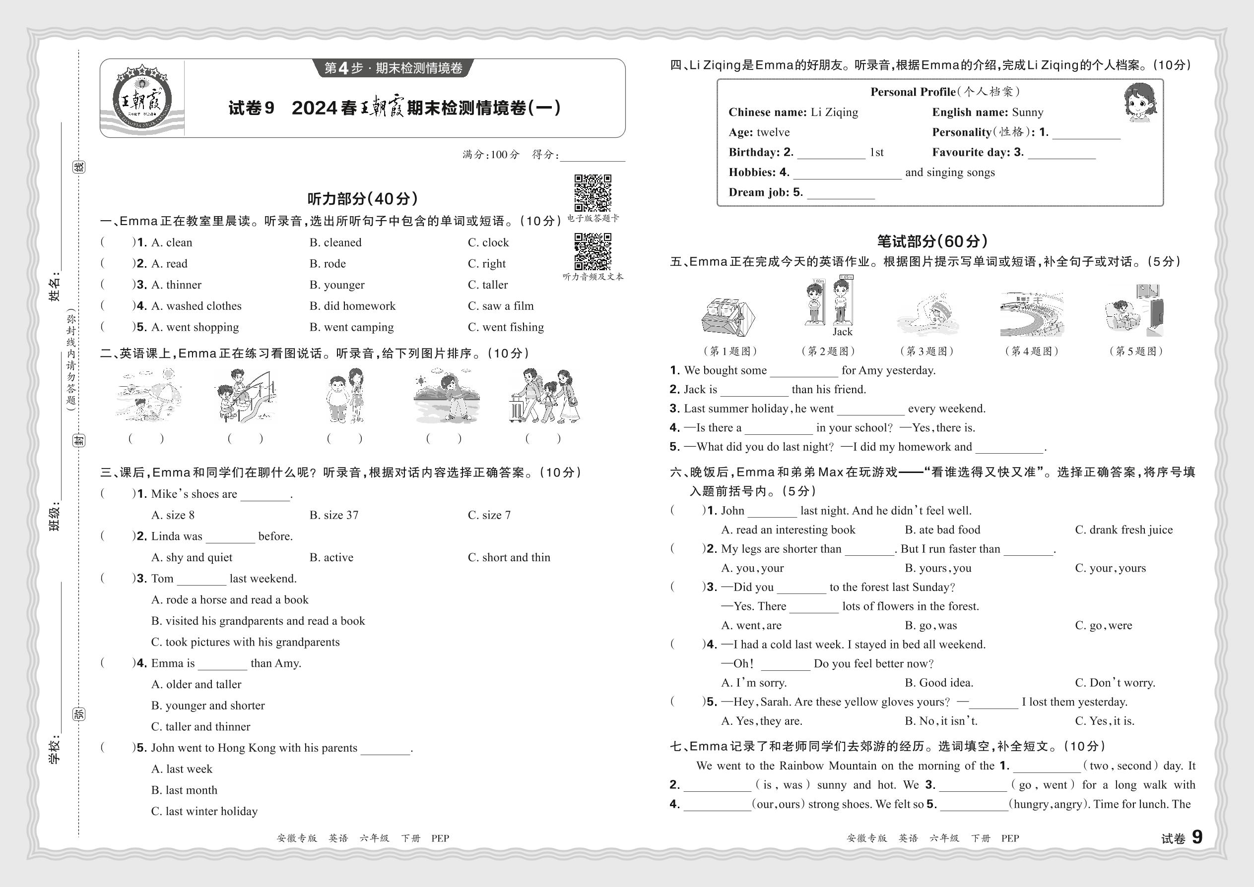 2024春下册六年级英语人教PEP版 王朝霞期末检测情境卷(一)