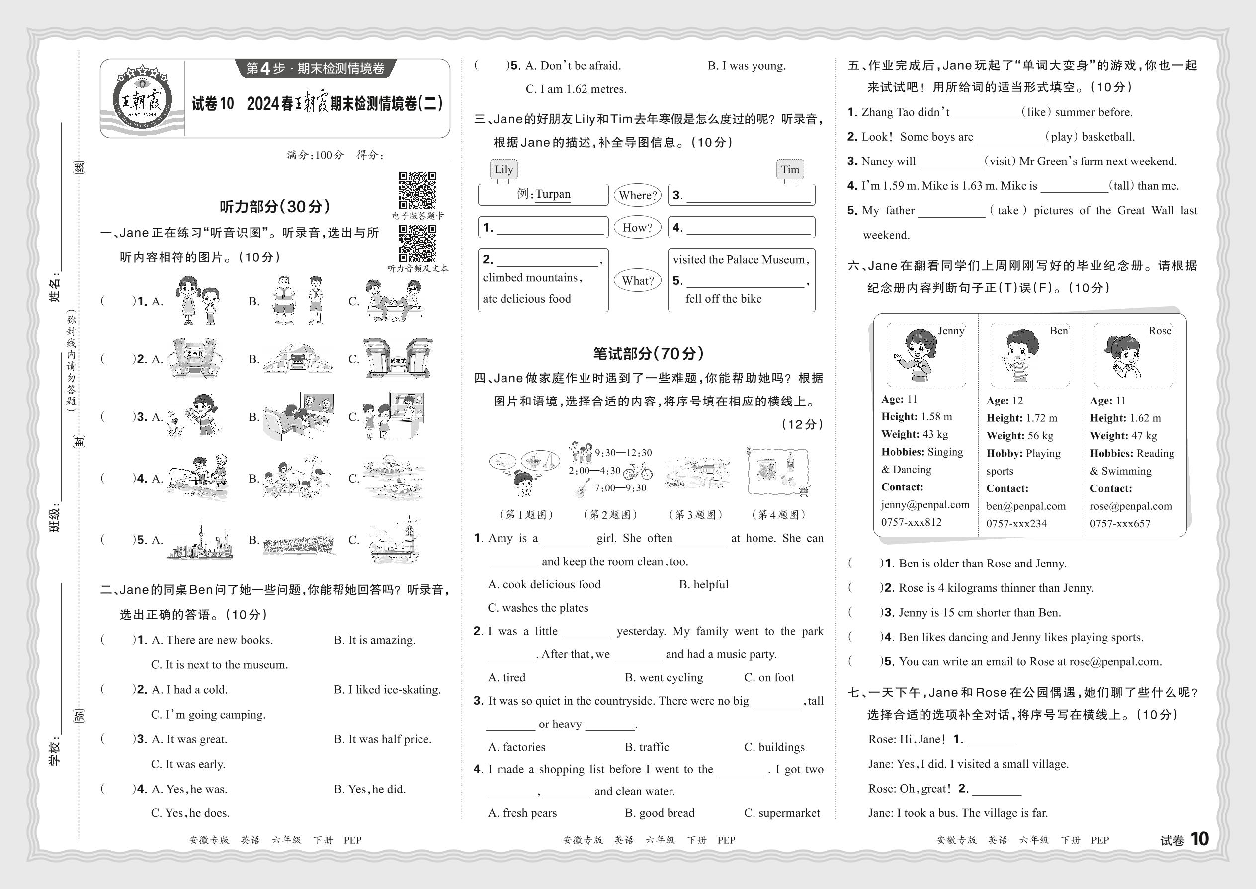 2024春下册六年级英语人教PEP版 王朝霞期末检测情境卷(二)