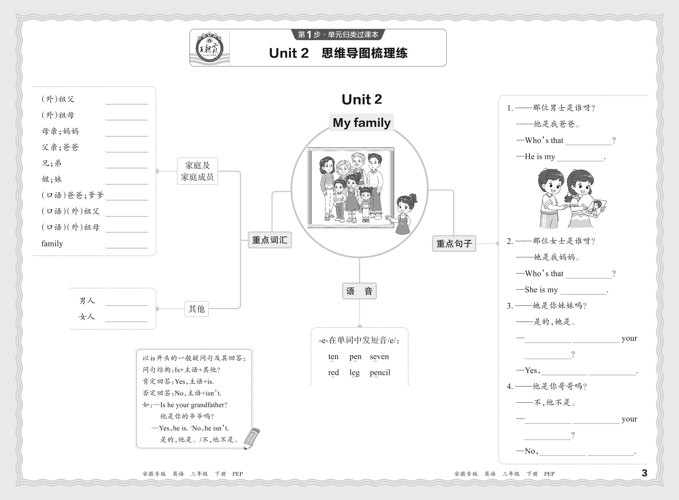 2024春下册三年级英语人教PEP版 期末过课本安徽版·单元归类复习练—Unit 2