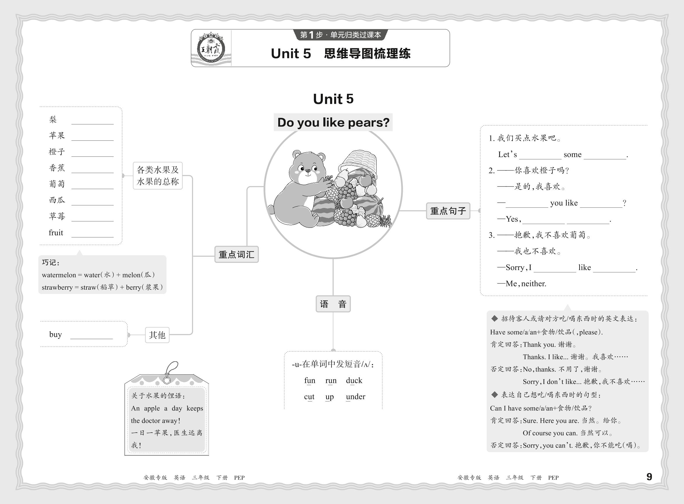 2024春下册三年级英语人教PEP版 期末过课本安徽版·单元归类复习练—Unit 5