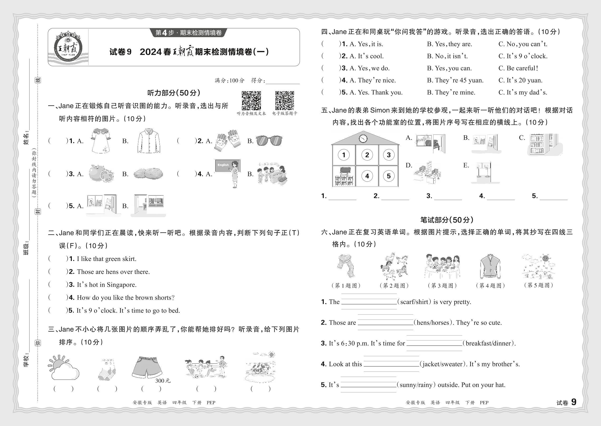 2024春下册四年级英语人教PEP版 王朝霞期末检测情境卷(一)