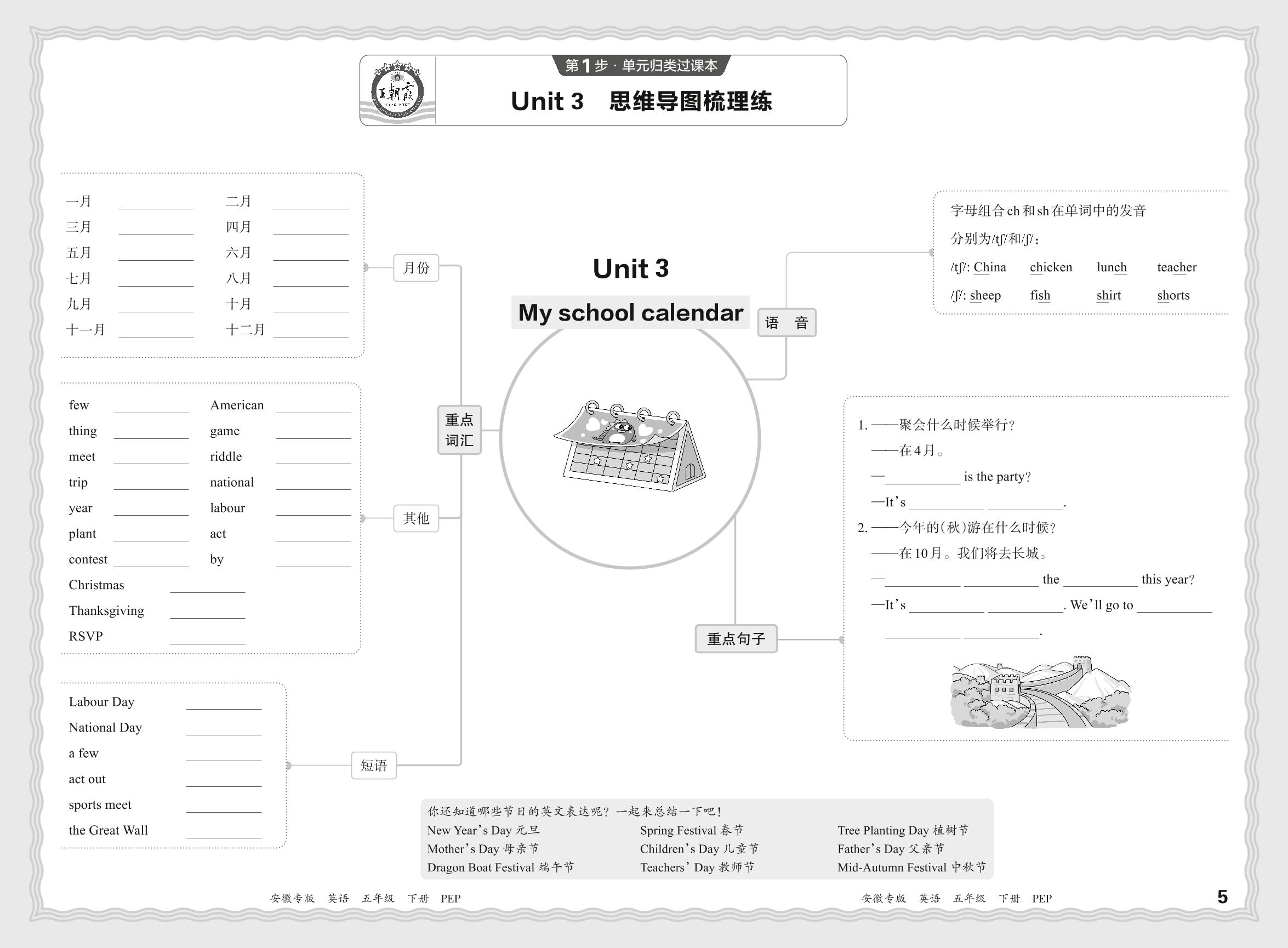 2024春下册五年级英语人教PEP版 期末过课本安徽版·单元归类复习练—Unit 3