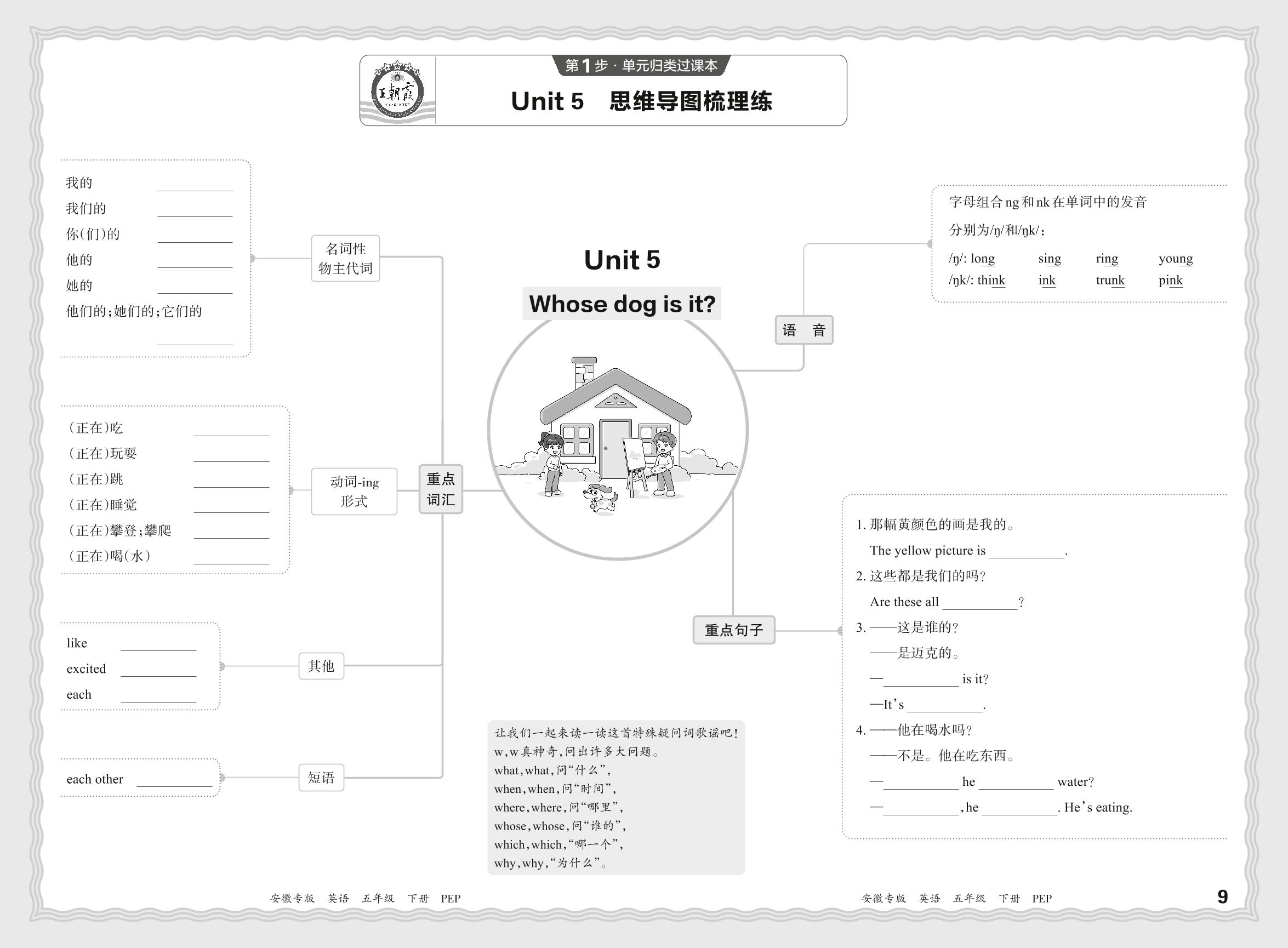 2024春下册五年级英语人教PEP版 期末过课本安徽版·单元归类复习练—Unit 5