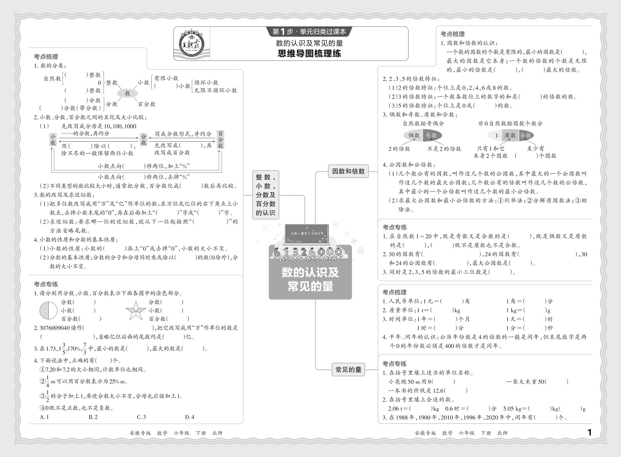 2024春下册六年级数学北师版 期末过课本安徽版·单元归类复习练——数的认识及常见的量【1】