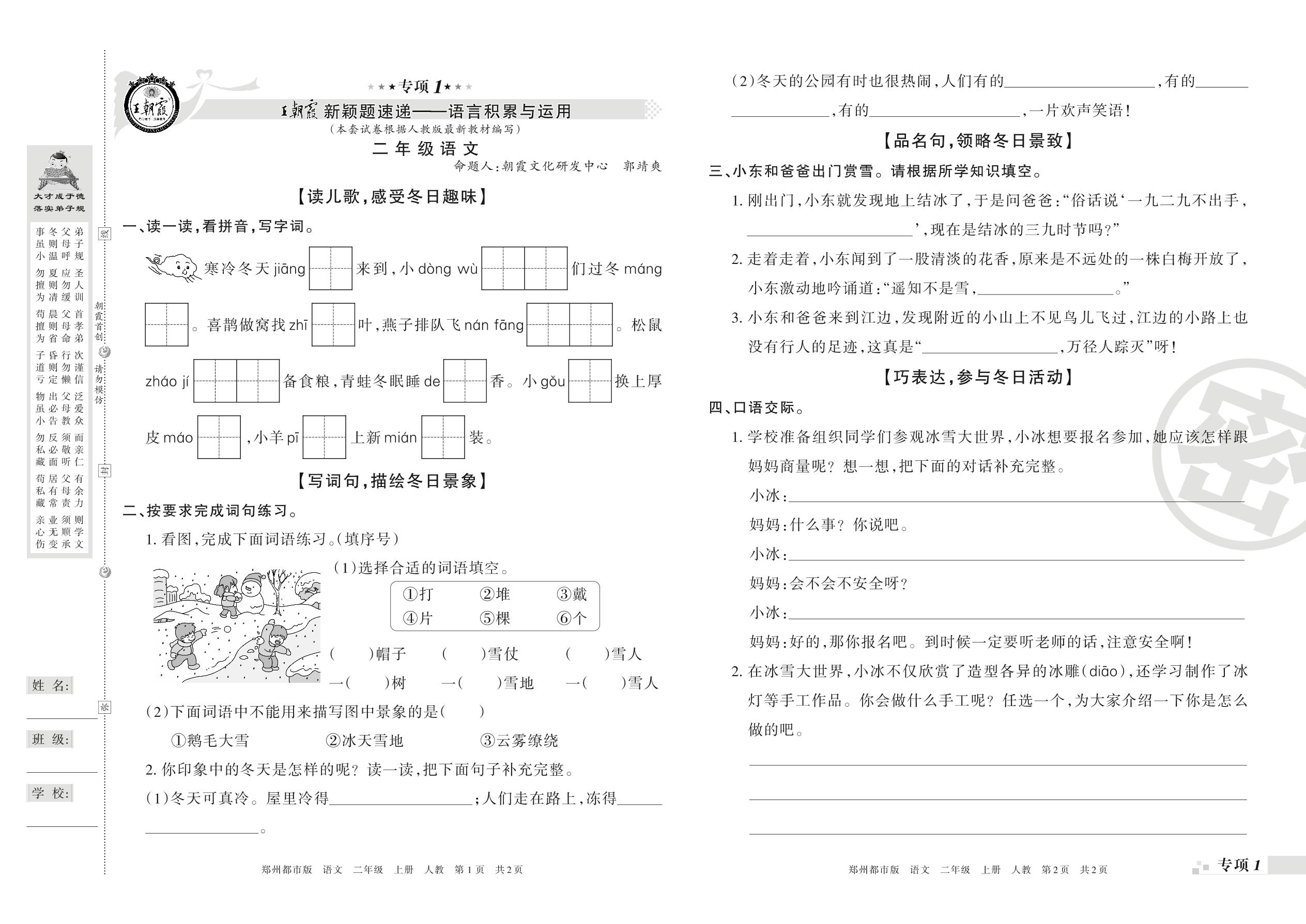 王朝霞期末专项卷——语言积累与运用、非连续性文本阅读二年级上册语文(人教版)_R21080165324【0】