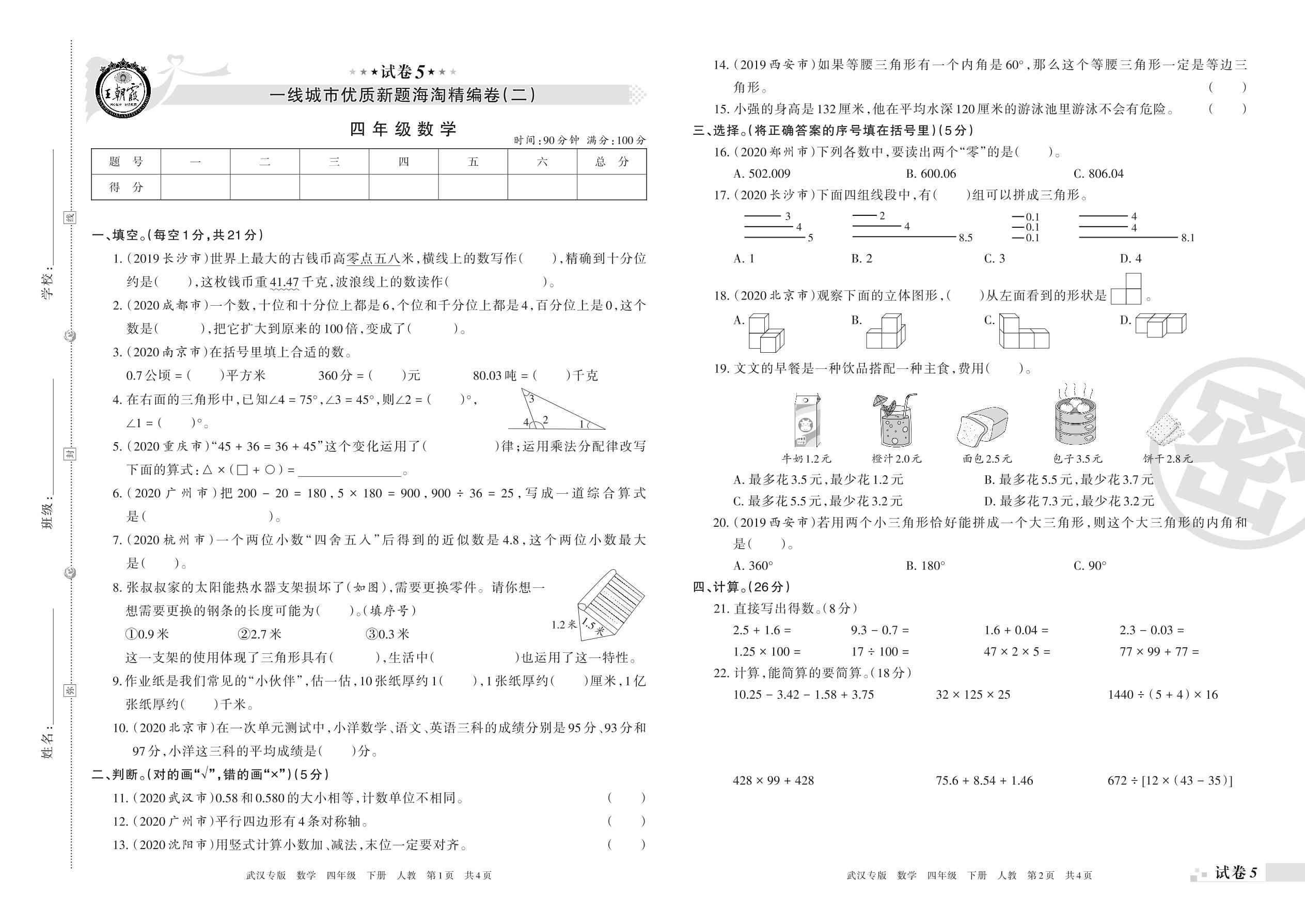 王朝霞海淘期末精编卷四年级下册数学(人教版)_R210804135956【5】