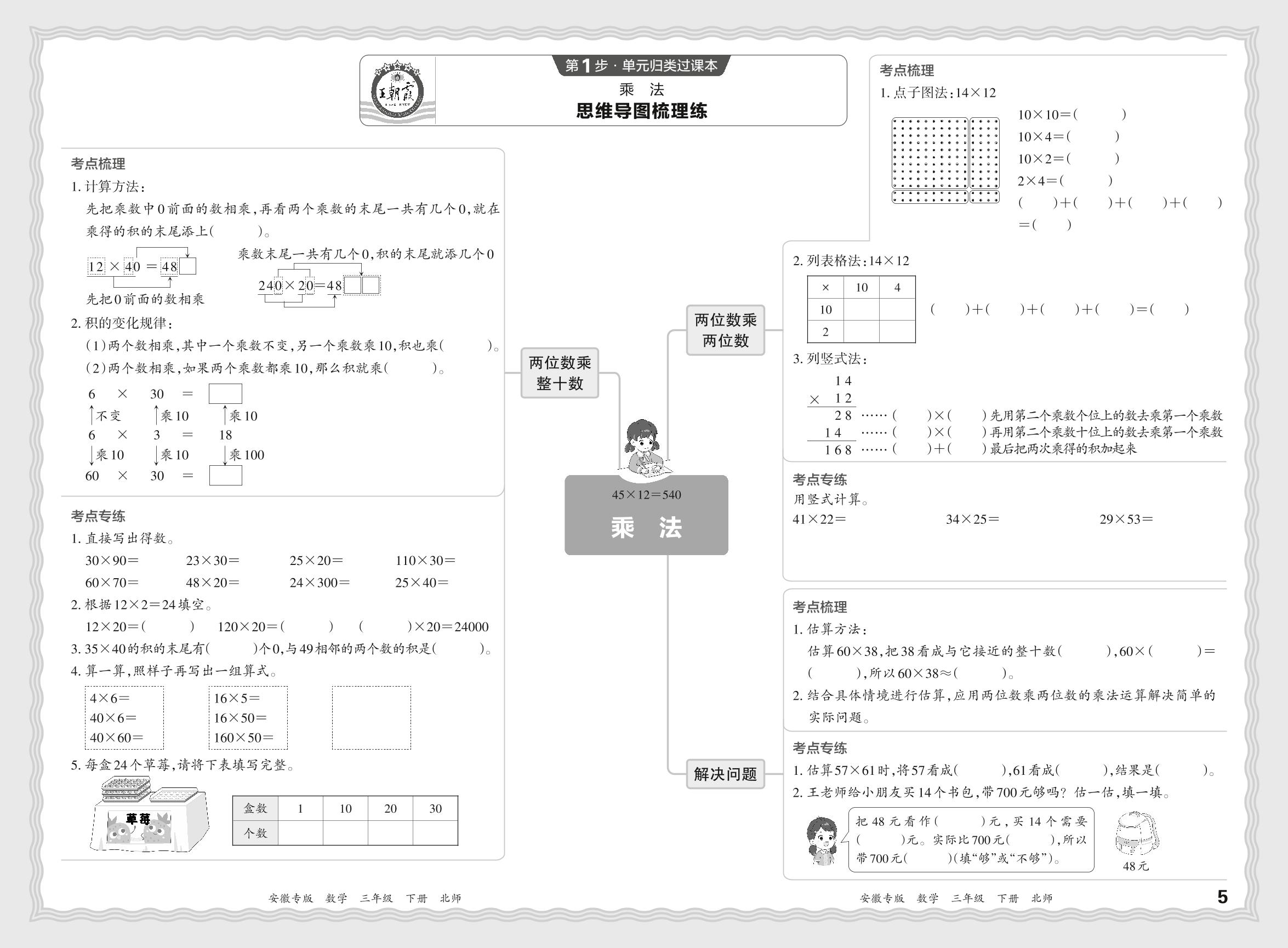 2024春下册三年级数学北师版 期末过课本安徽版·单元归类复习练——乘法【3】