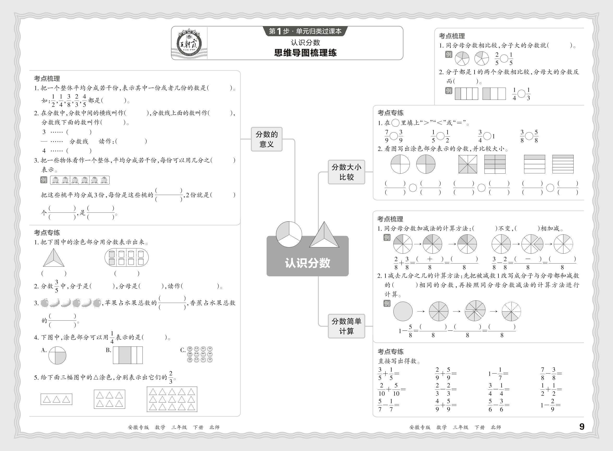 2024春下册三年级数学北师版 期末过课本安徽版·单元归类复习练——认识分数【5】