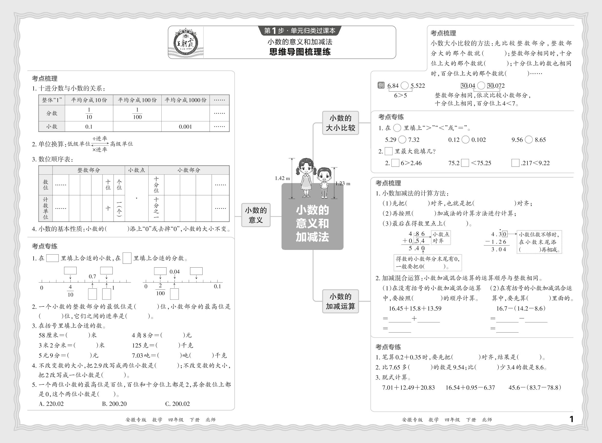 2024春下册四年级数学北师版 期末过课本安徽版·单元归类复习练——小数的意义和加减法【1】