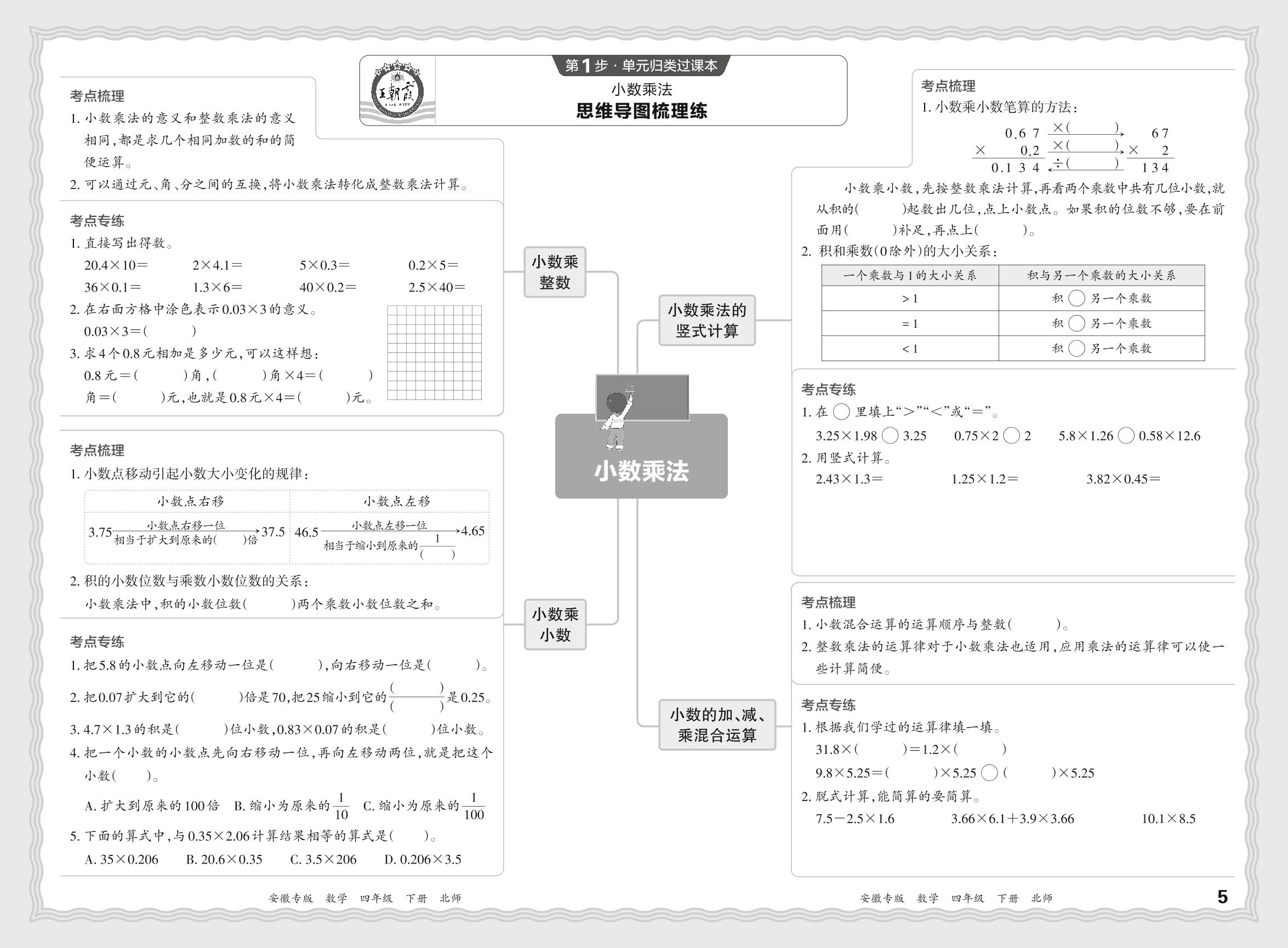2024春下册四年级数学北师版 期末过课本安徽版·单元归类复习练——小数乘法【3】