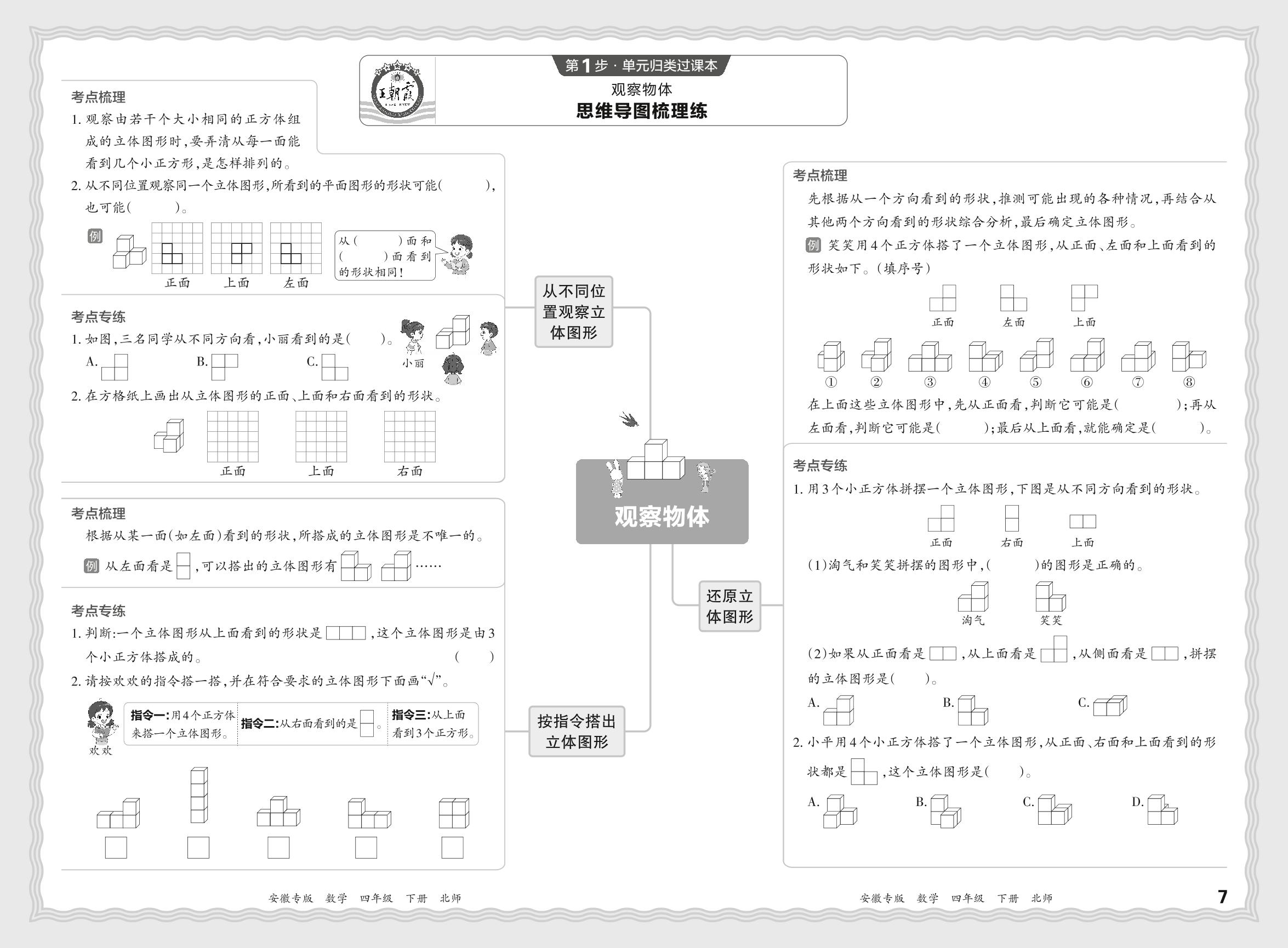 2024春下册四年级数学北师版 期末过课本安徽版·单元归类复习练——观察物体【4】