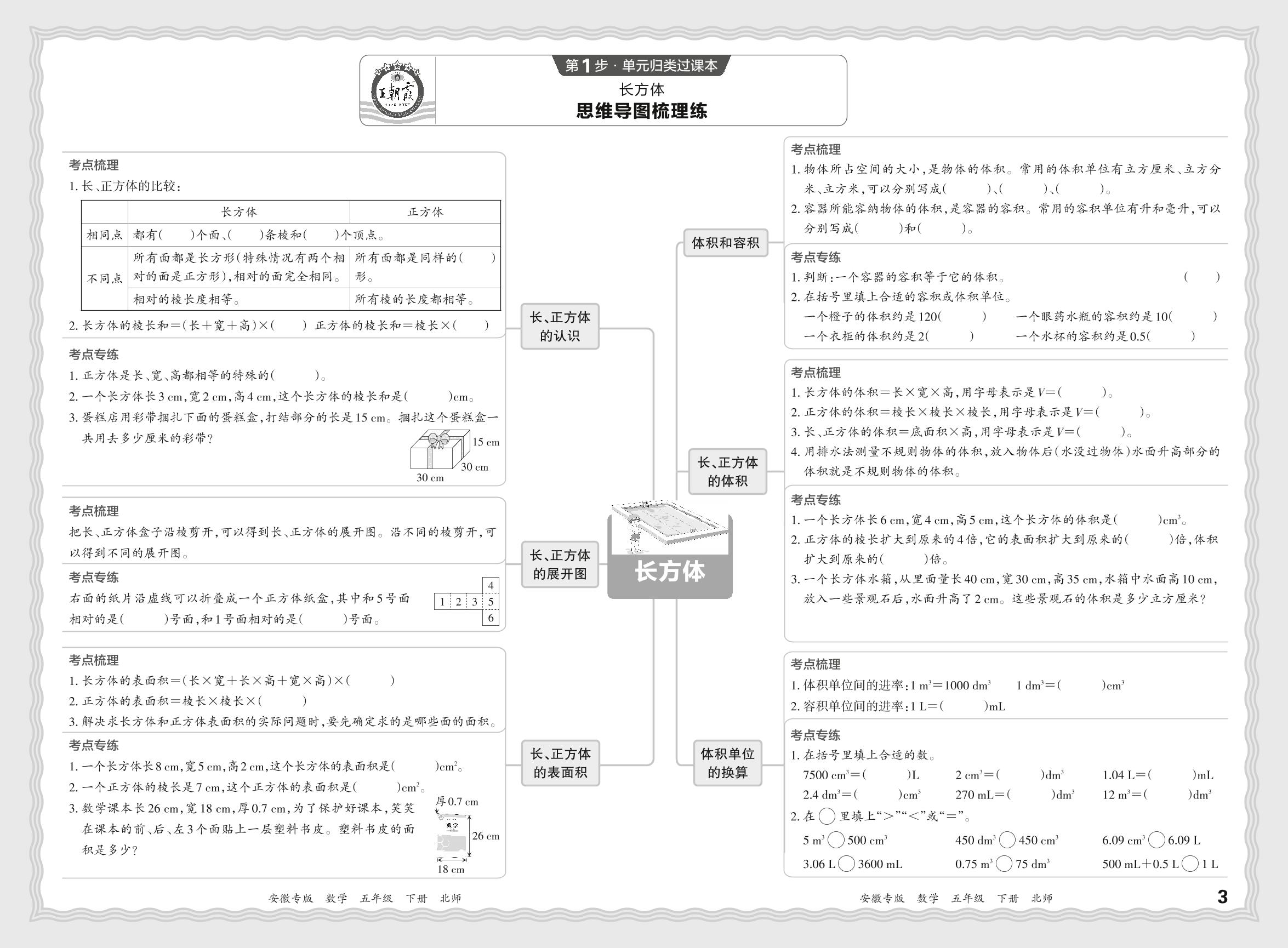 2024春下册五年级数学北师版 期末过课本安徽版·单元归类复习练——长方体【2】