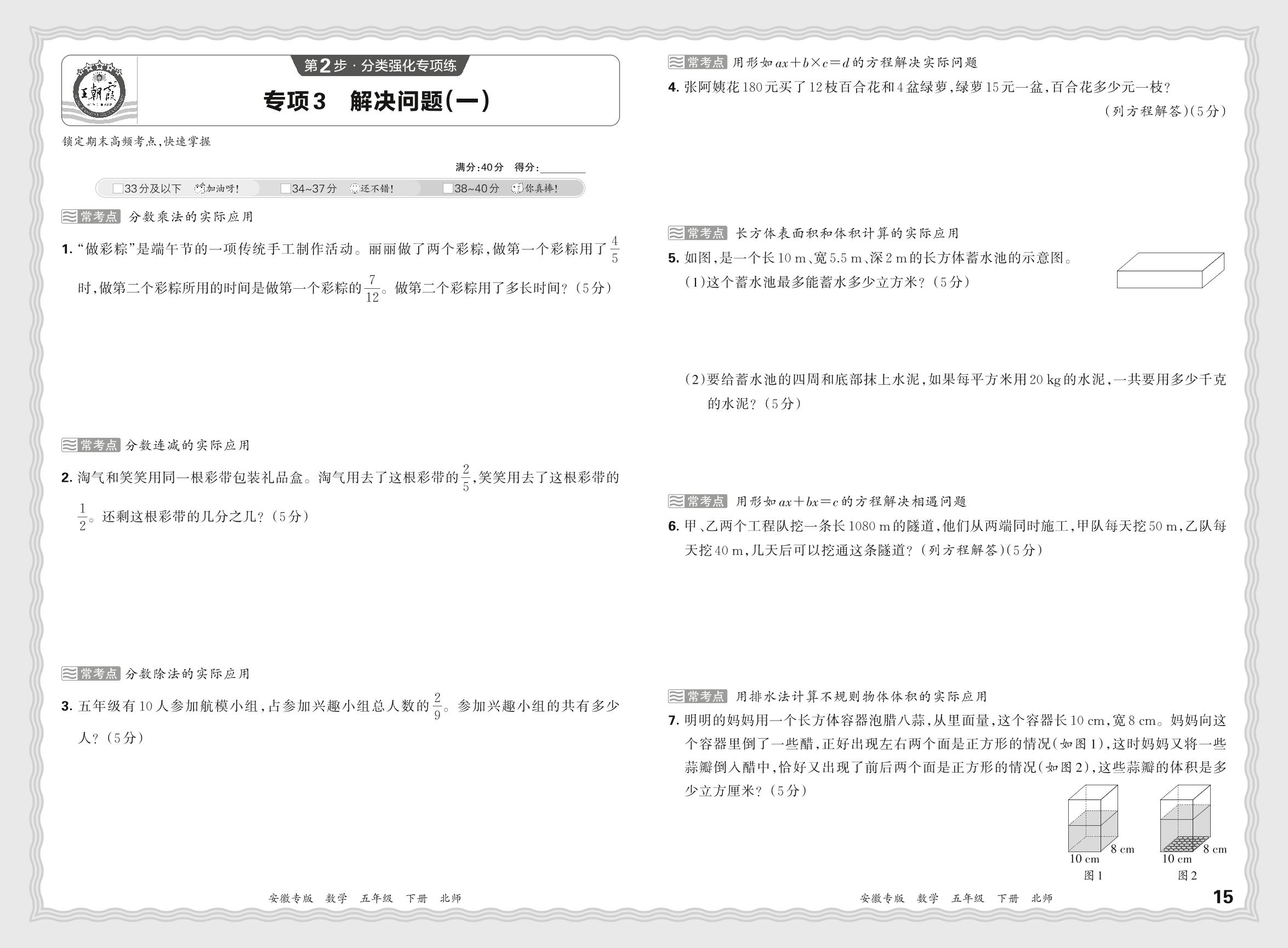 2024春下册五年级数学北师版 期末专项卷安徽版·解决问题(一)【3】