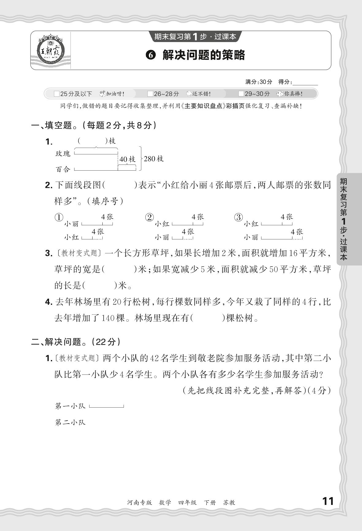 2024春下册四年级数学苏教版 期末过课本河南版·解决问题的策略【6】