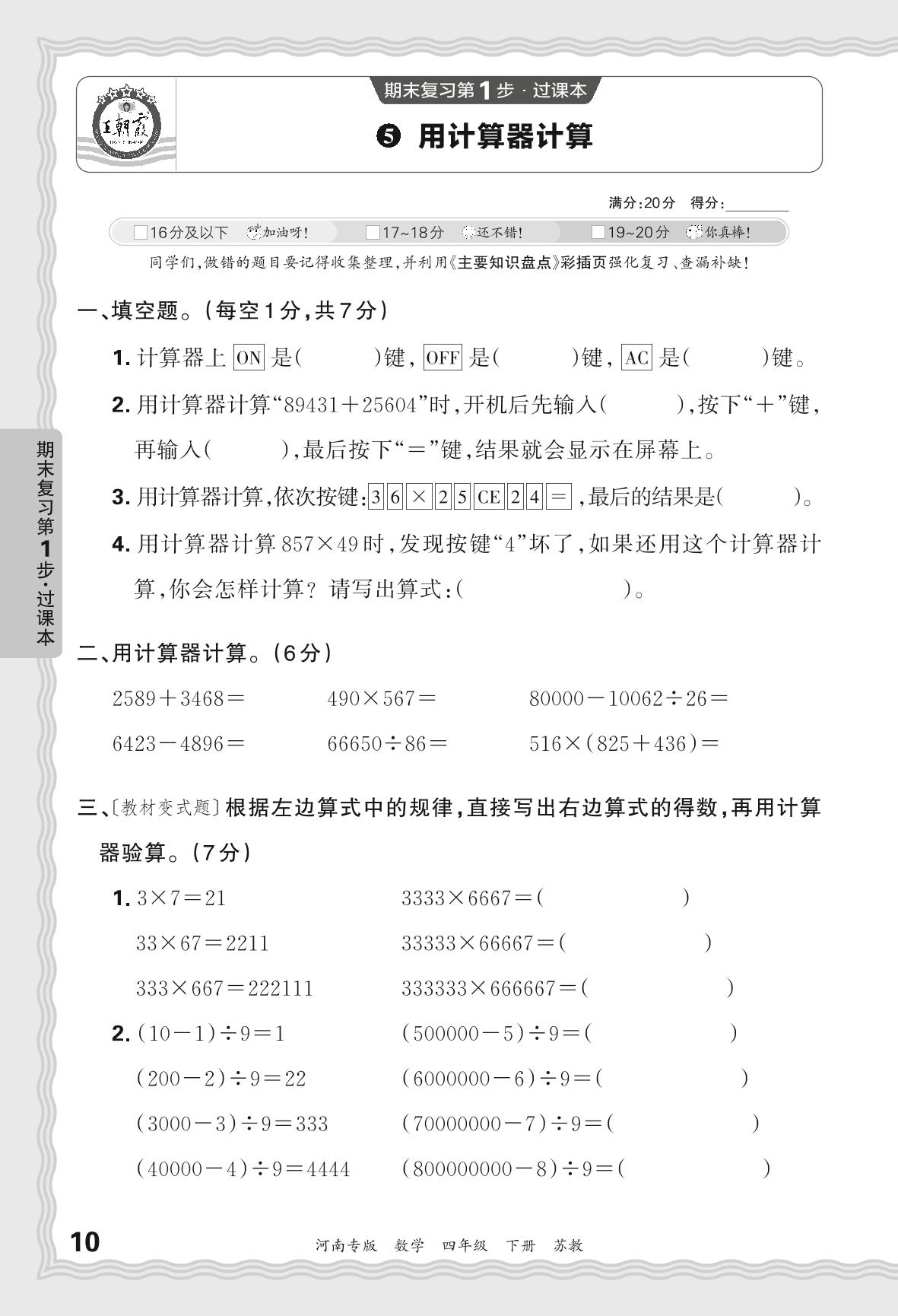 2024春下册四年级数学苏教版 期末过课本河南版·用计算器计算【5】
