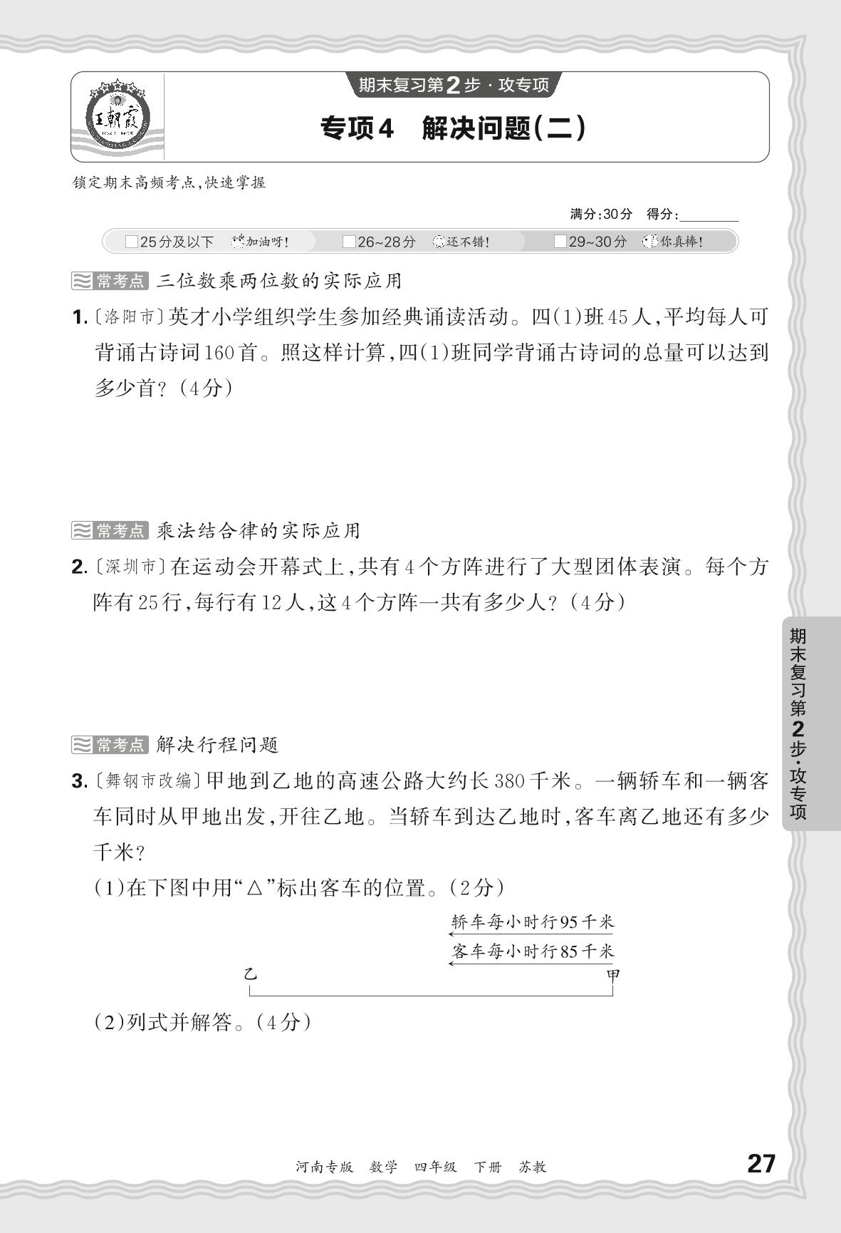 2024春下册四年级数学苏教版 期末专项卷河南版·解决问题(二)【4】