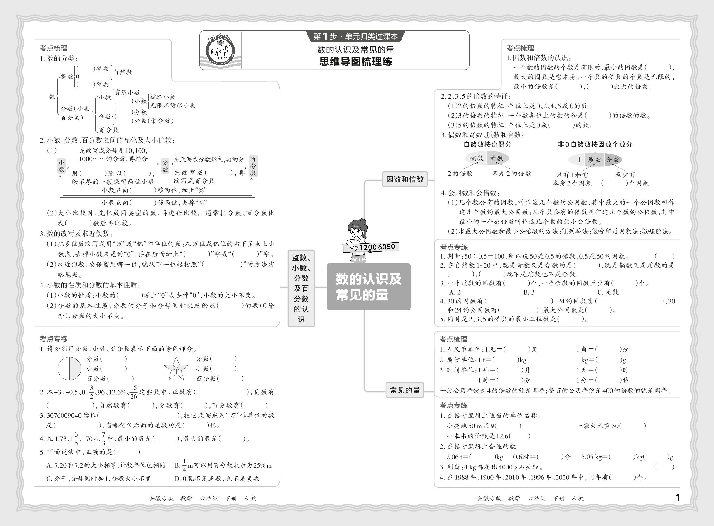 2024春下册六年级数学人教版 期末过课本安徽版·单元归类复习练——数的认识及常见的量【1】