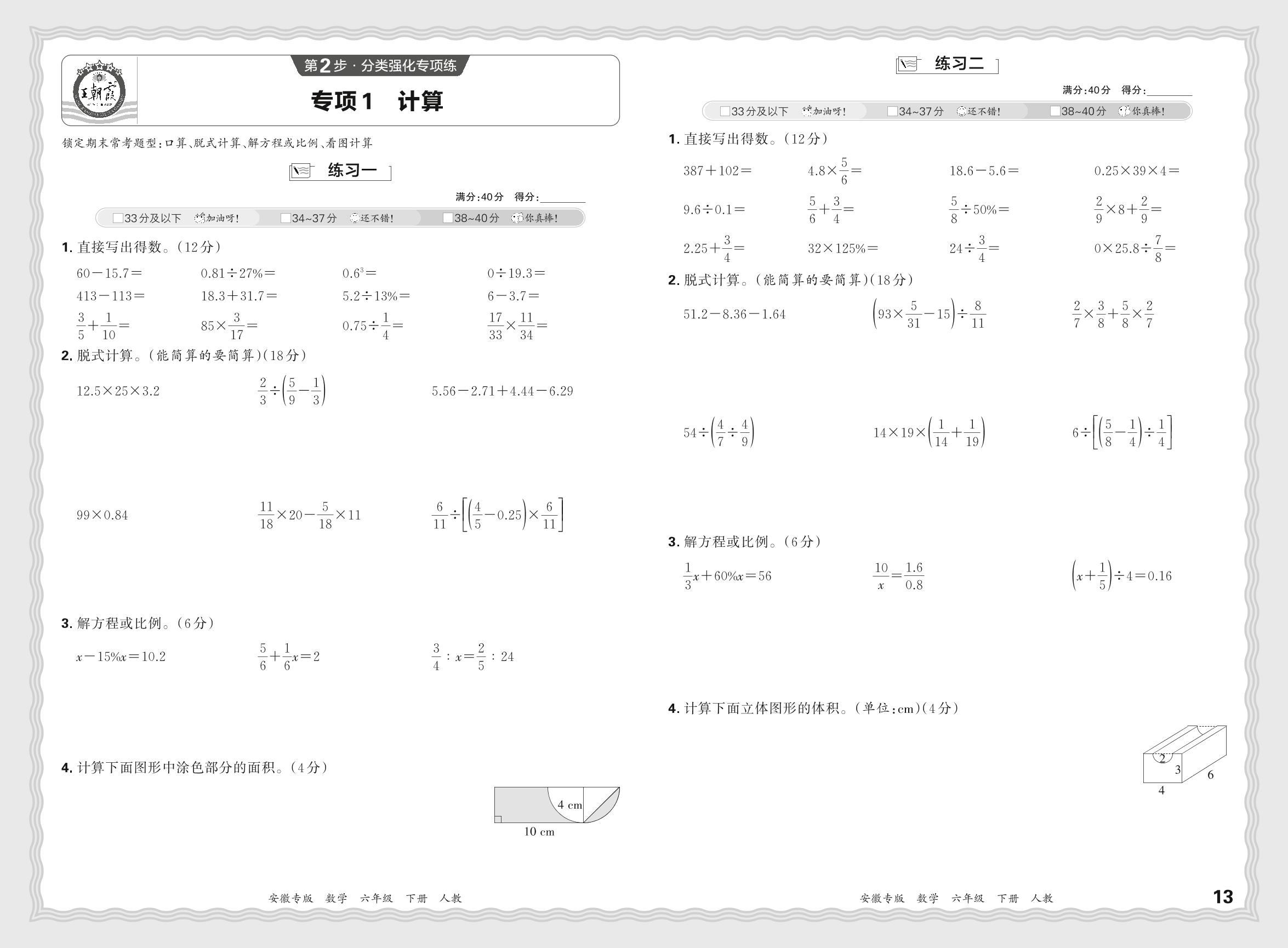 2024春下册六年级数学人教版 期末专项卷安徽版·计算【1】