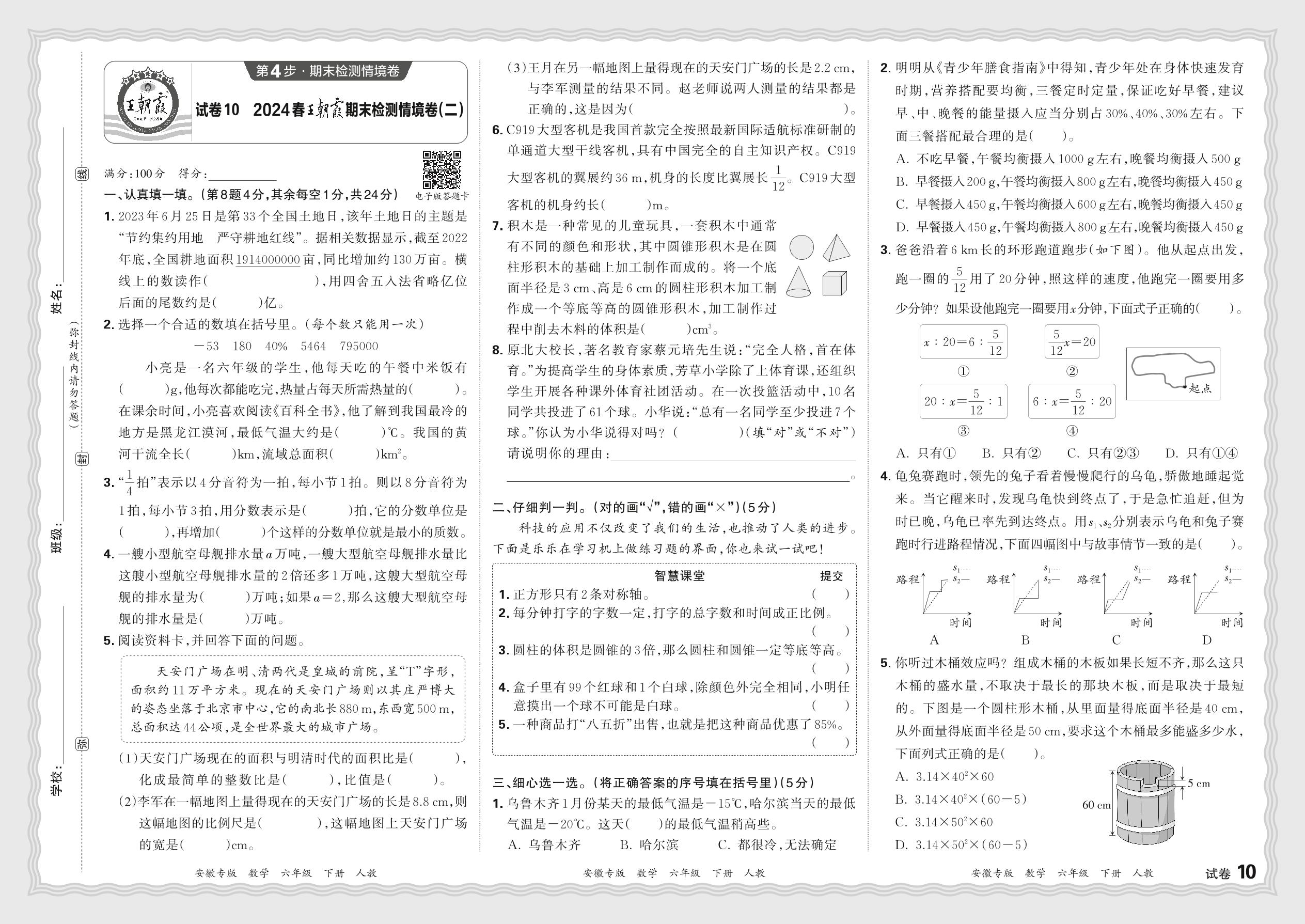 2024春下册六年级数学人教版 王朝霞期末检测情境卷(二)
