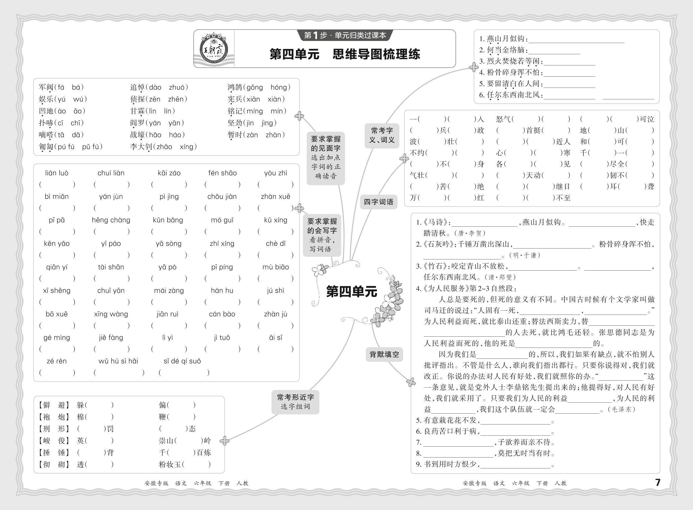 2024春下册六年级语文人教版 期末过课本安徽版·单元归类复习练——第四单元【4】