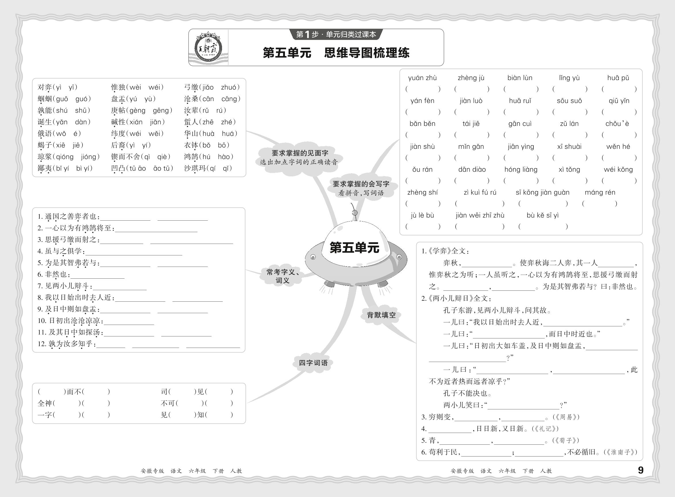 2024春下册六年级语文人教版 期末过课本安徽版·单元归类复习练——第五单元【5】