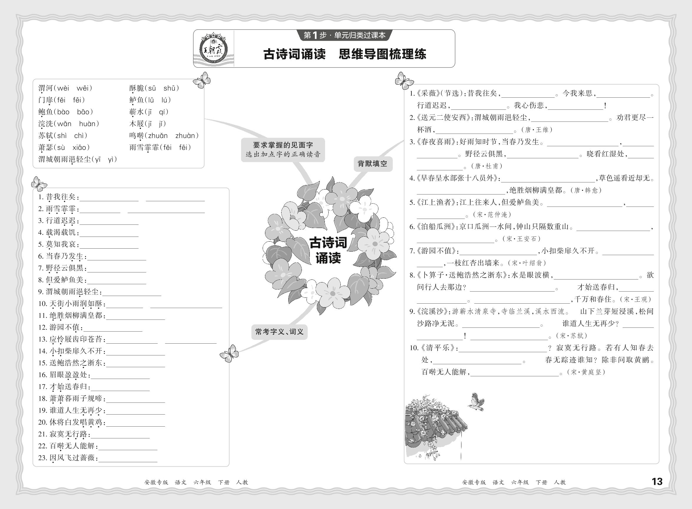 2024春下册六年级语文人教版 期末过课本安徽版·单元归类复习练——古诗词诵读【7】