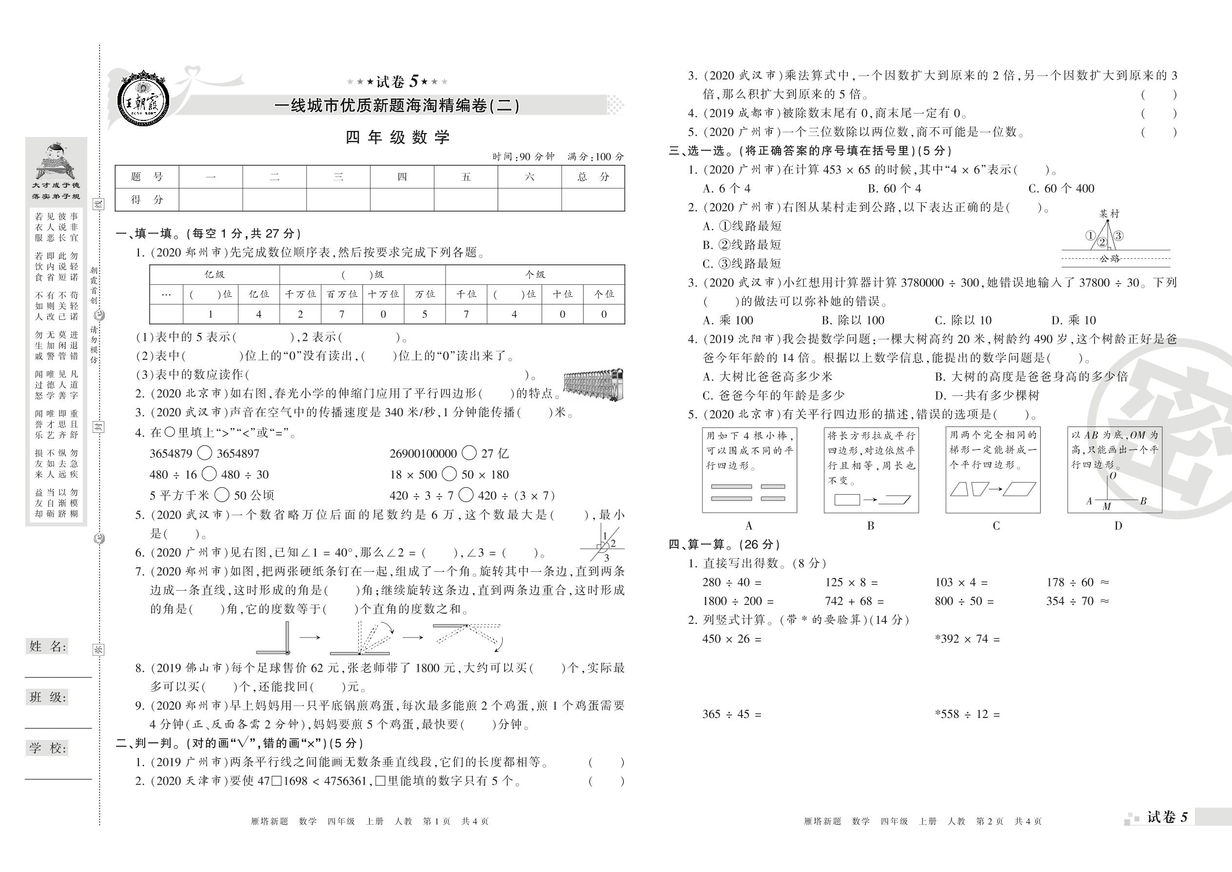 王朝霞海淘期末精编卷四年级上册数学(人教版)【5】