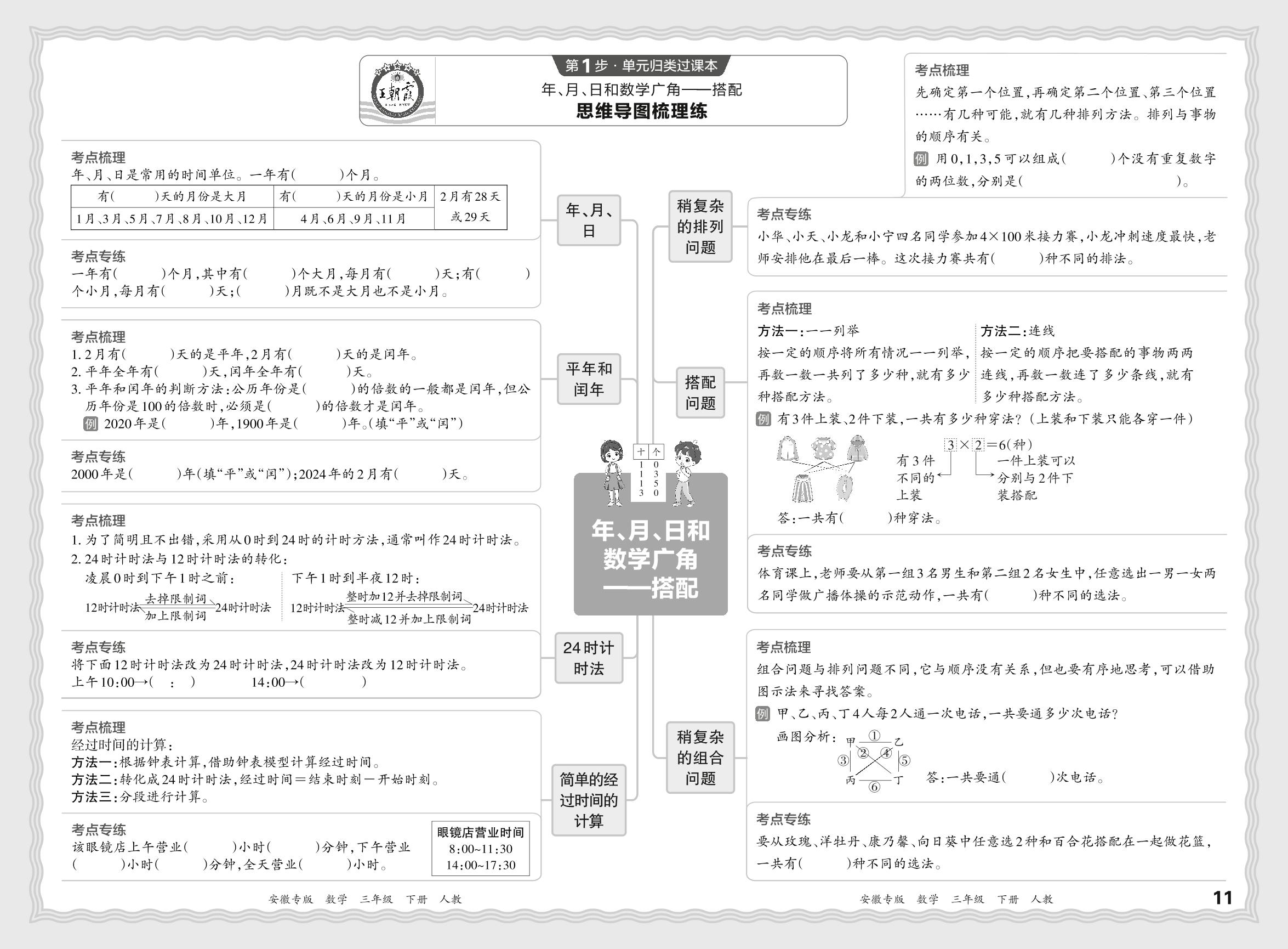 2024春下册三年级数学人教版 期末过课本安徽版·单元归类复习练——年、月、日和数学广角——搭配【6】