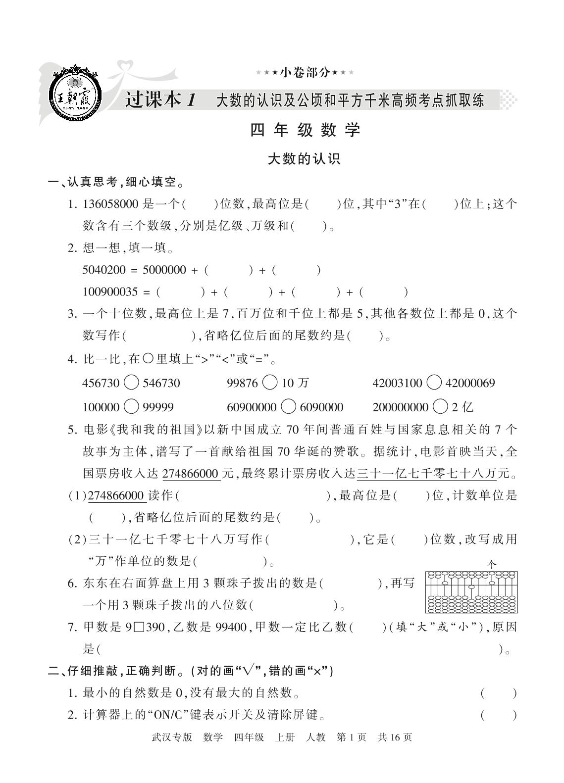 王朝霞期末过课本四年级上册数学(人教版)_R210804140100【0】