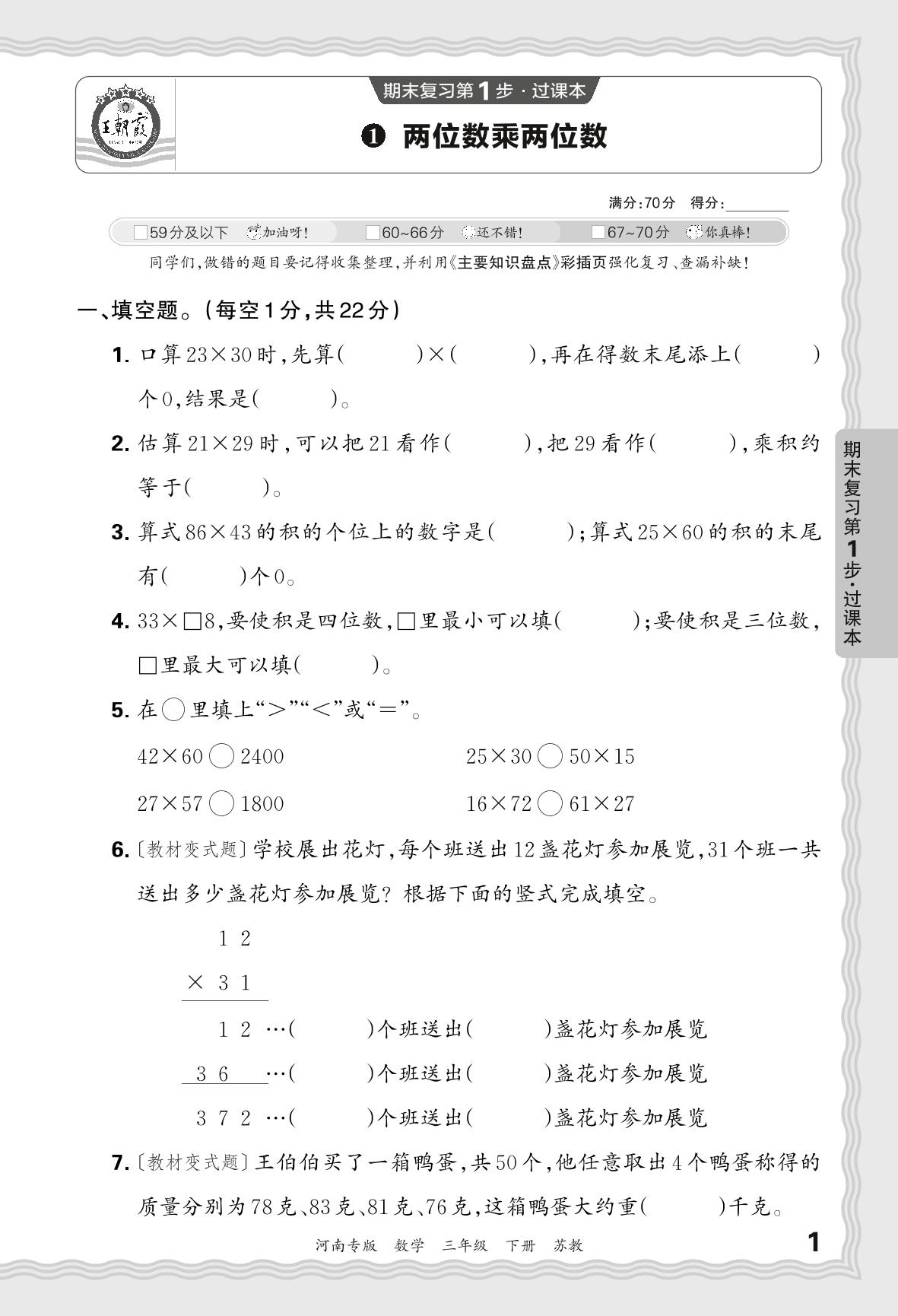2024春下册三年级数学苏教版 期末过课本河南版·两位数乘两位数【1】