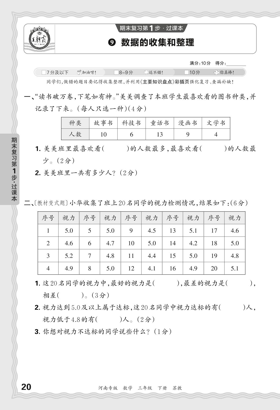 2024春下册三年级数学苏教版 期末过课本河南版·数据的收集和整理【9】