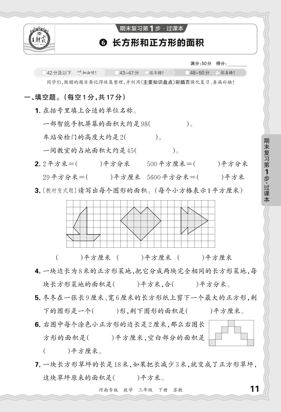 2024春下册三年级数学苏教版 期末过课本河南版·长方形和正方形的面积【6】