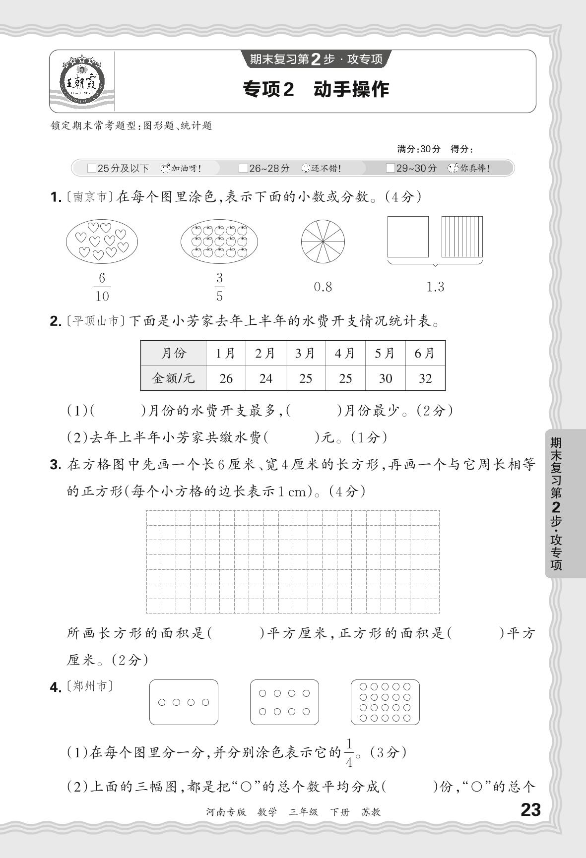 2024春下册三年级数学苏教版 期末专项卷河南版·动手操作【2】