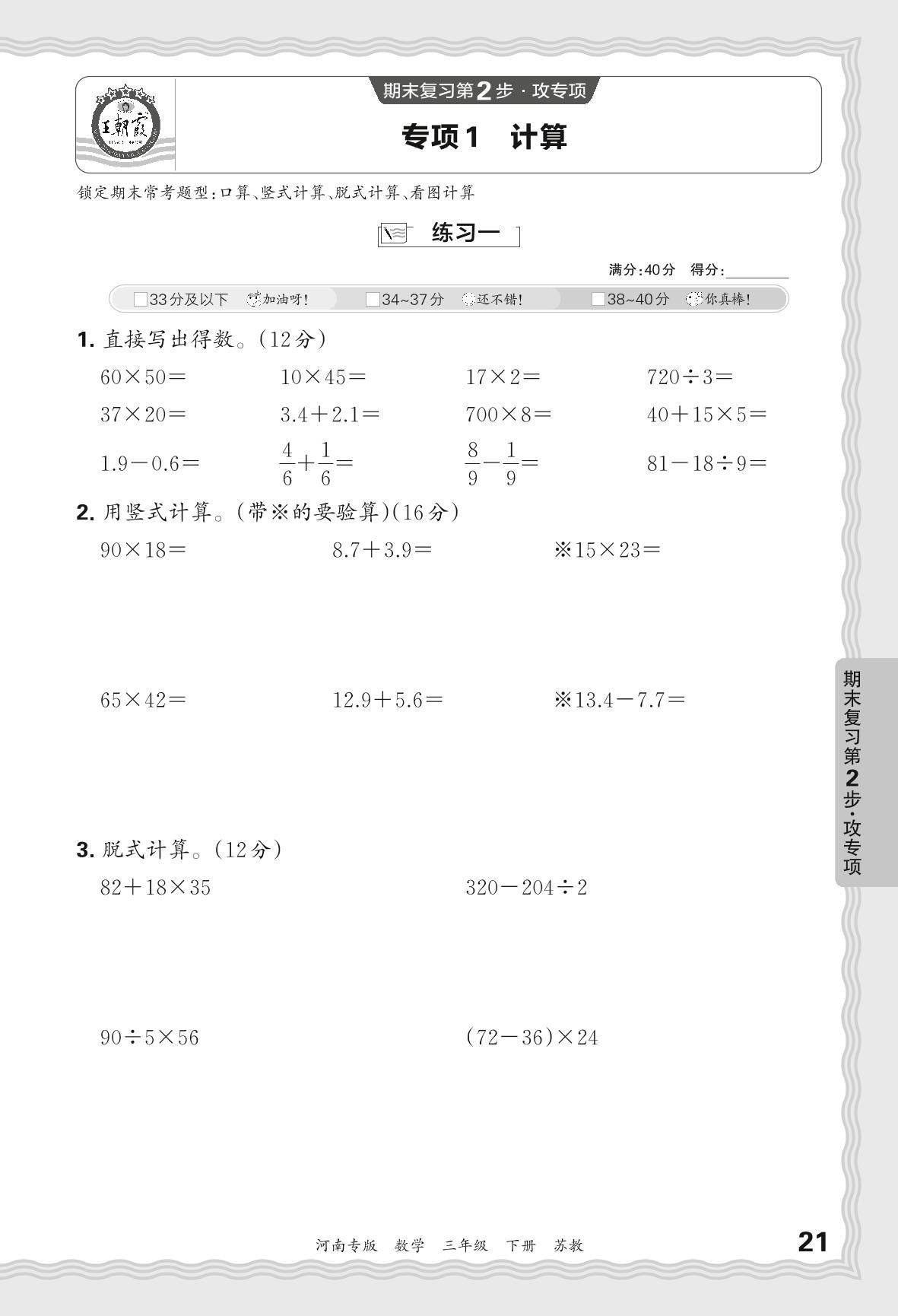 2024春下册三年级数学苏教版 期末专项卷河南版·计算【1】