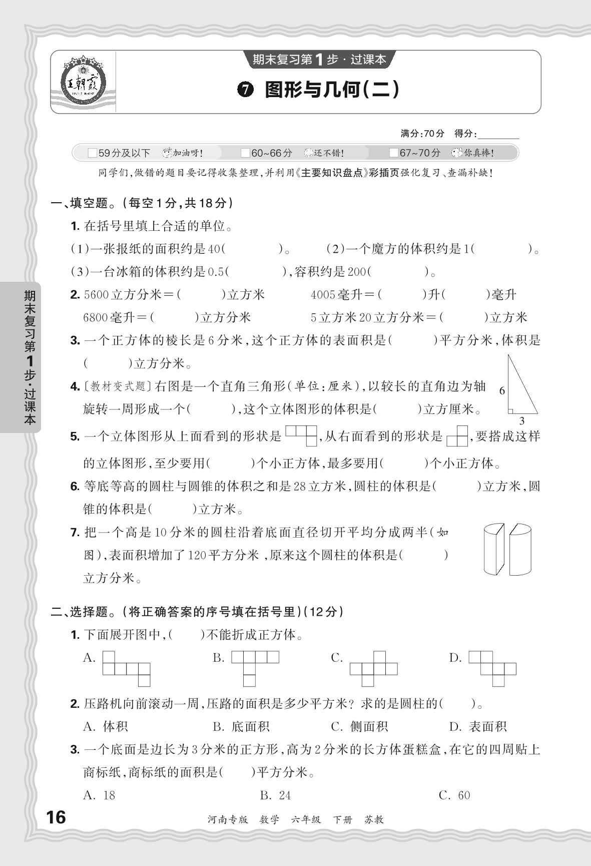 2024春下册六年级数学苏教版 期末过课本河南版·图形与几何(二)