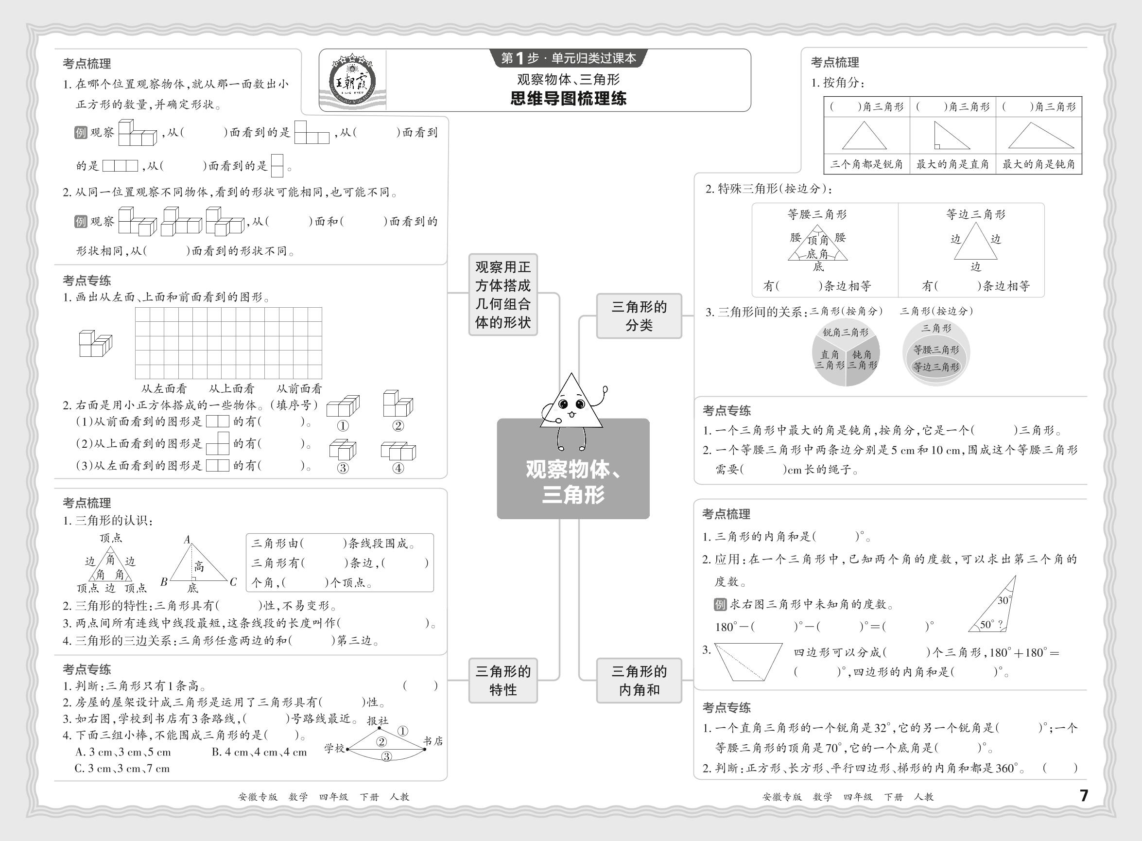 2024春下册四年级数学人教版 期末过课本安徽版·单元归类复习练——观察物体、三角形【4】