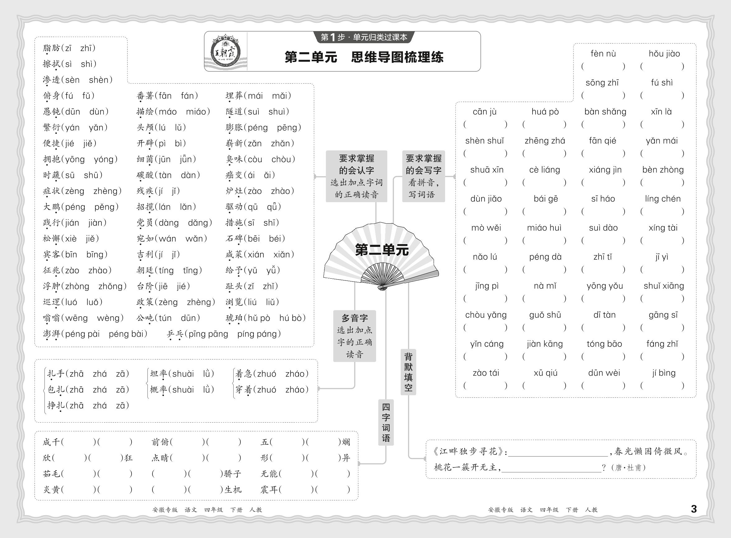 2024春下册四年级语文人教版 期末过课本安徽版·单元归类复习练——第二单元