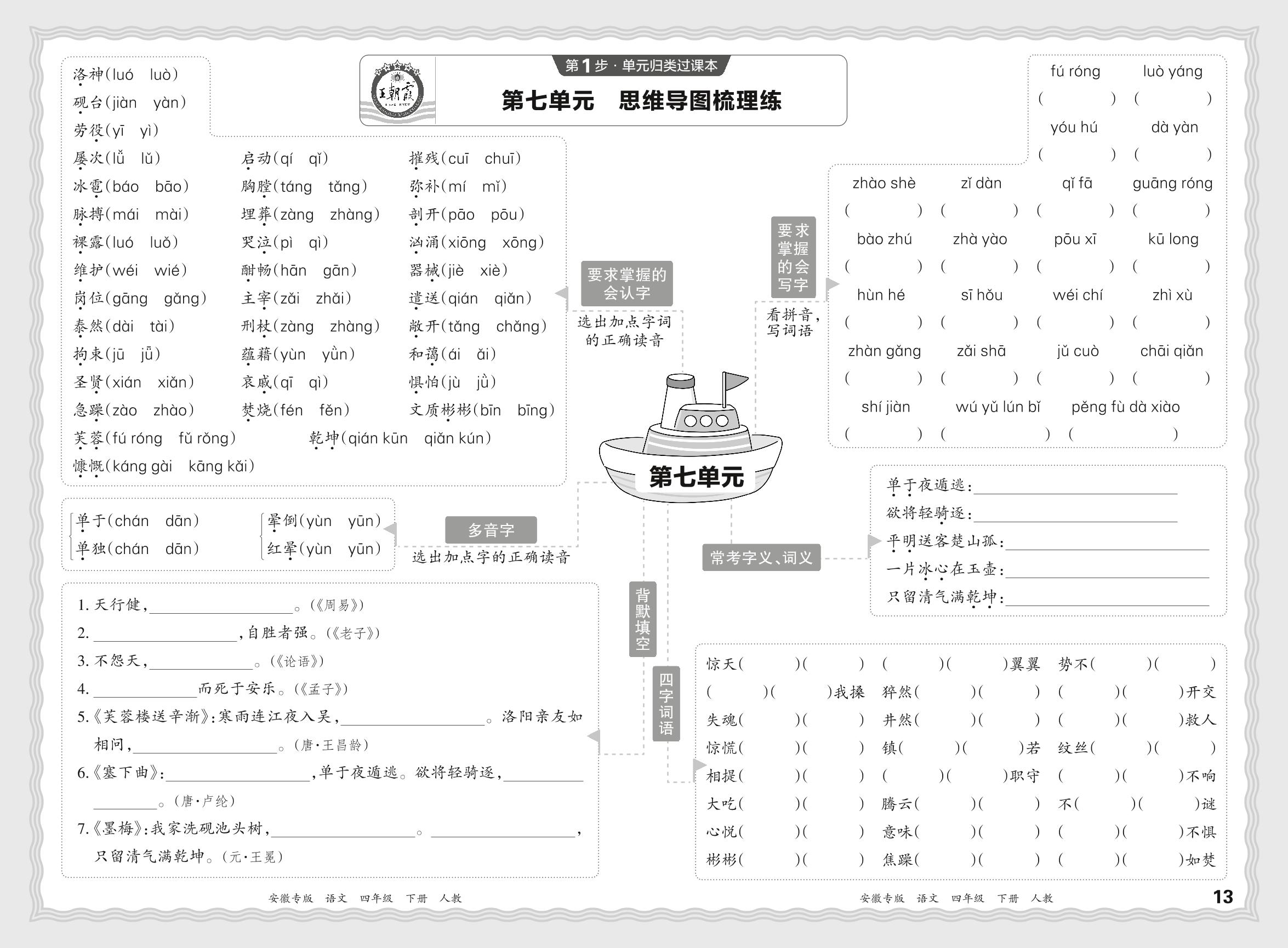 2024春下册四年级语文人教版 期末过课本安徽版·单元归类复习练——第七单元
