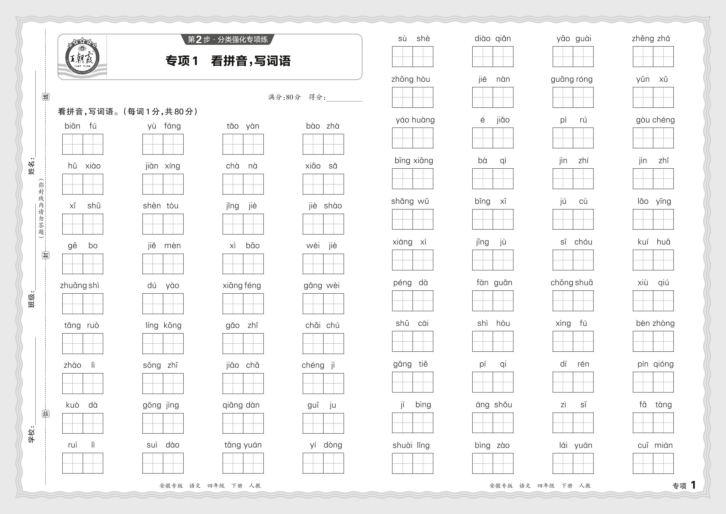 2024春下册四年级语文人教版 期末专项卷安徽版·看拼音,写词语【1】