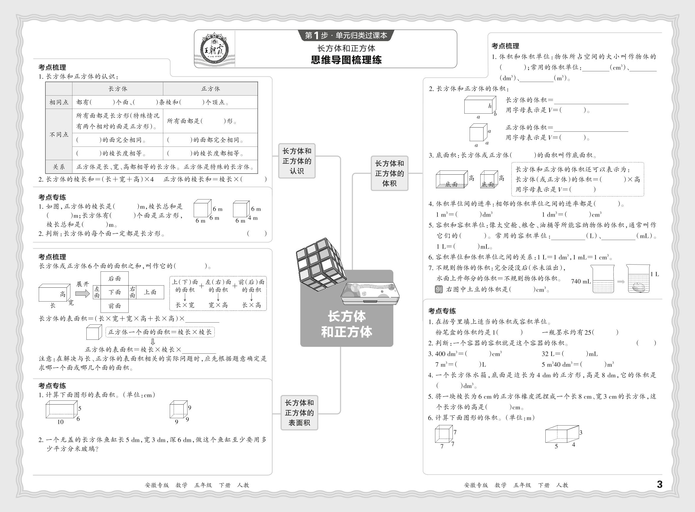 2024春下册五年级数学人教版 期末过课本安徽版·单元归类复习练——长方体和正方体【2】