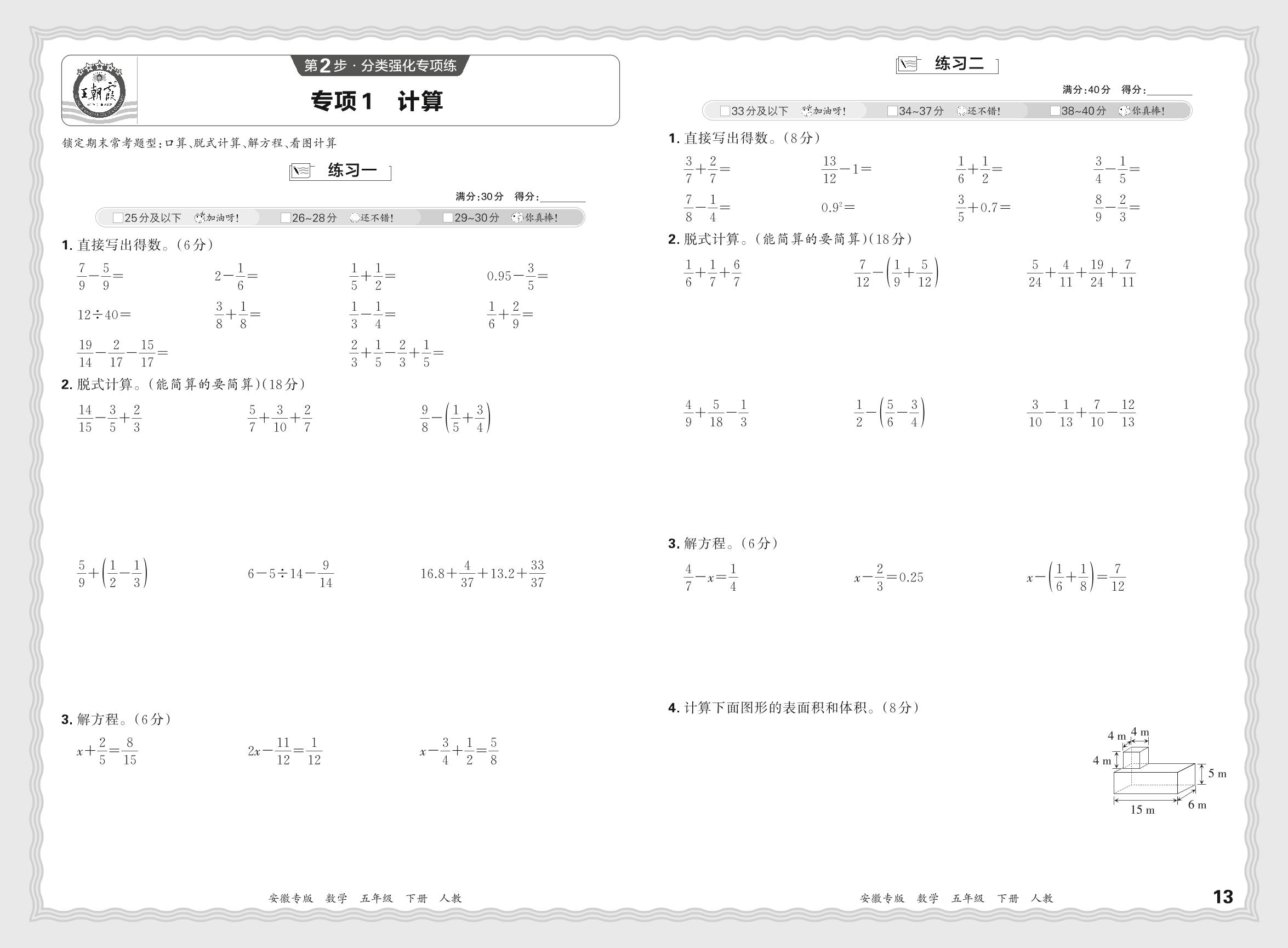 2024春下册五年级数学人教版 期末专项卷安徽版·计算【1】