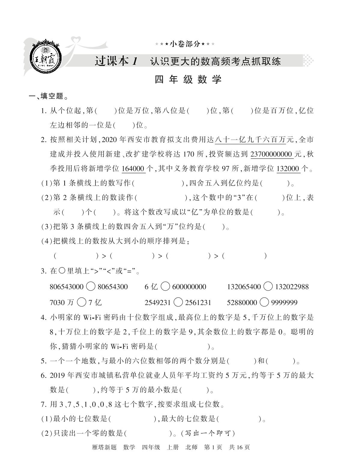 王朝霞期末过课本四年级上册数学(北师版)_R210804140157【0】