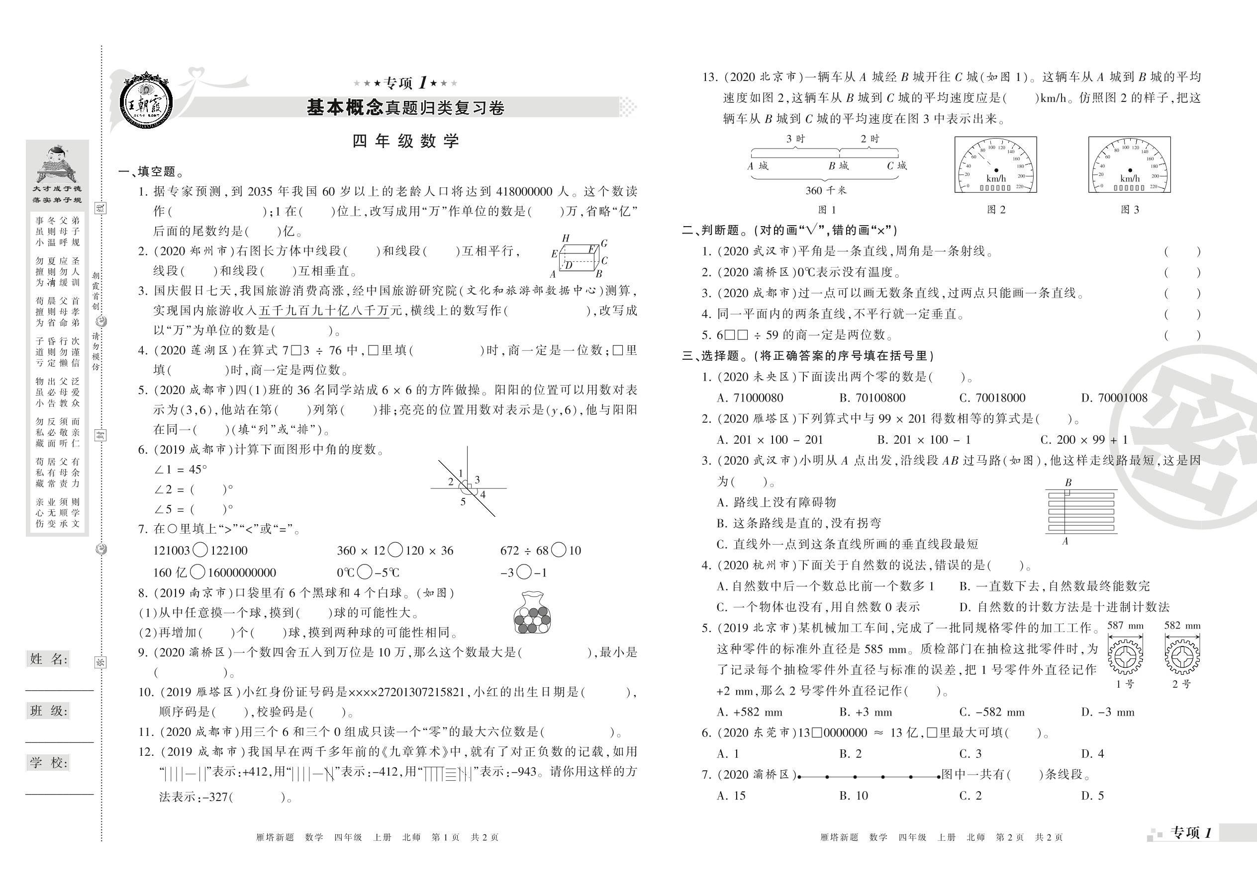 王朝霞期末专项卷——基本概念、计算真题归类复习四年级上册数学(北师版)_R210804140206【0】