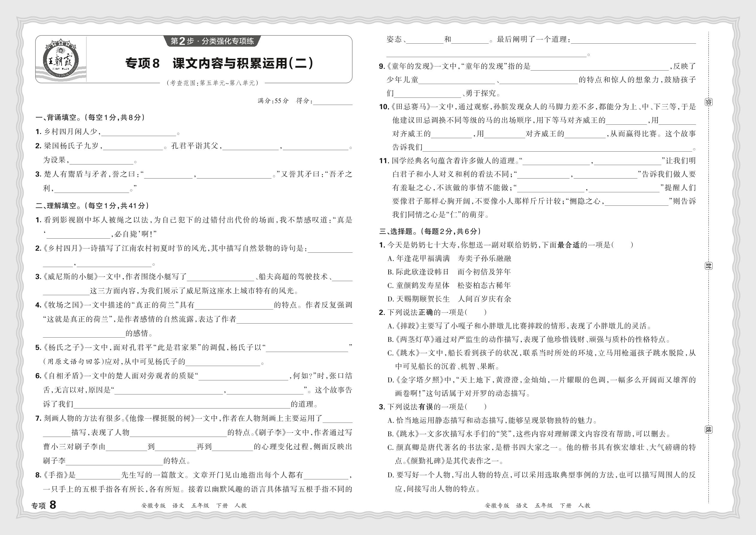 2024春下册五年级语文人教版 期末专项卷安徽版·课文内容与积累运用(二)【8】