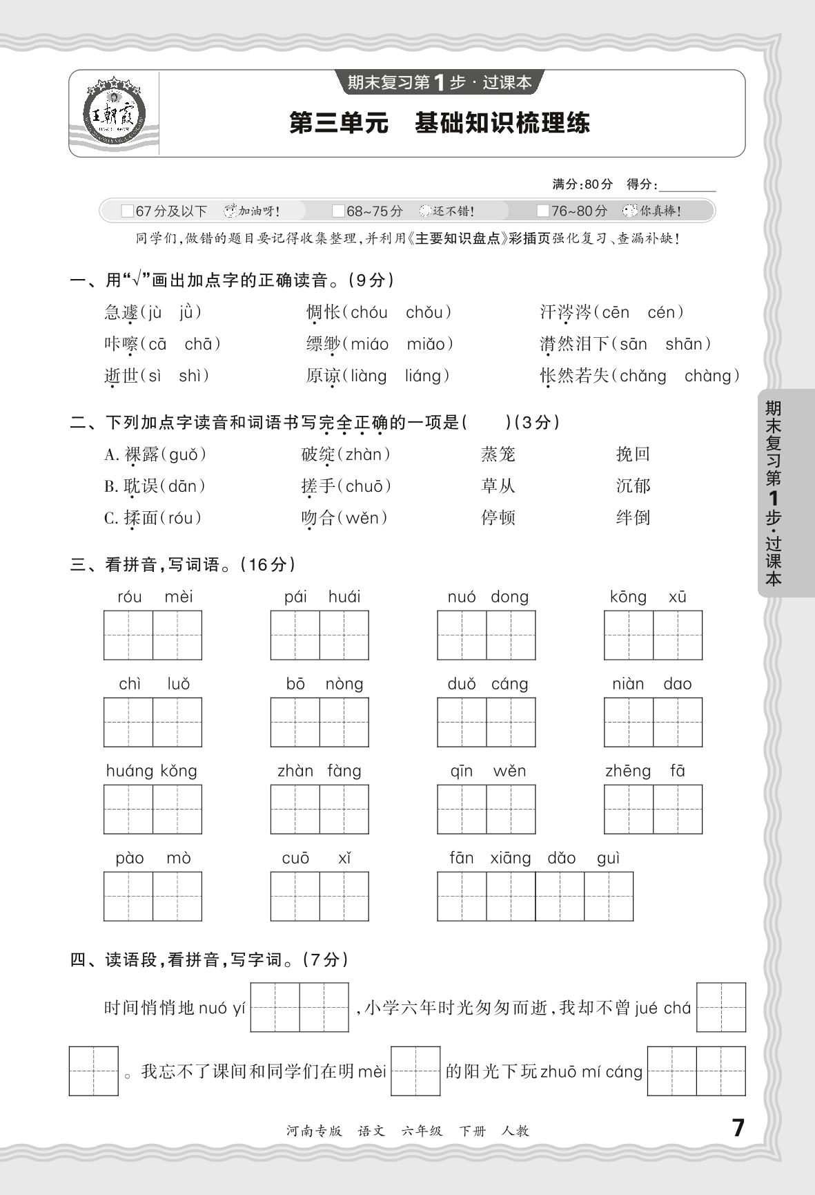 2024春下册六年级语文人教版 期末过课本河南版·第三单元 基础知识梳理练