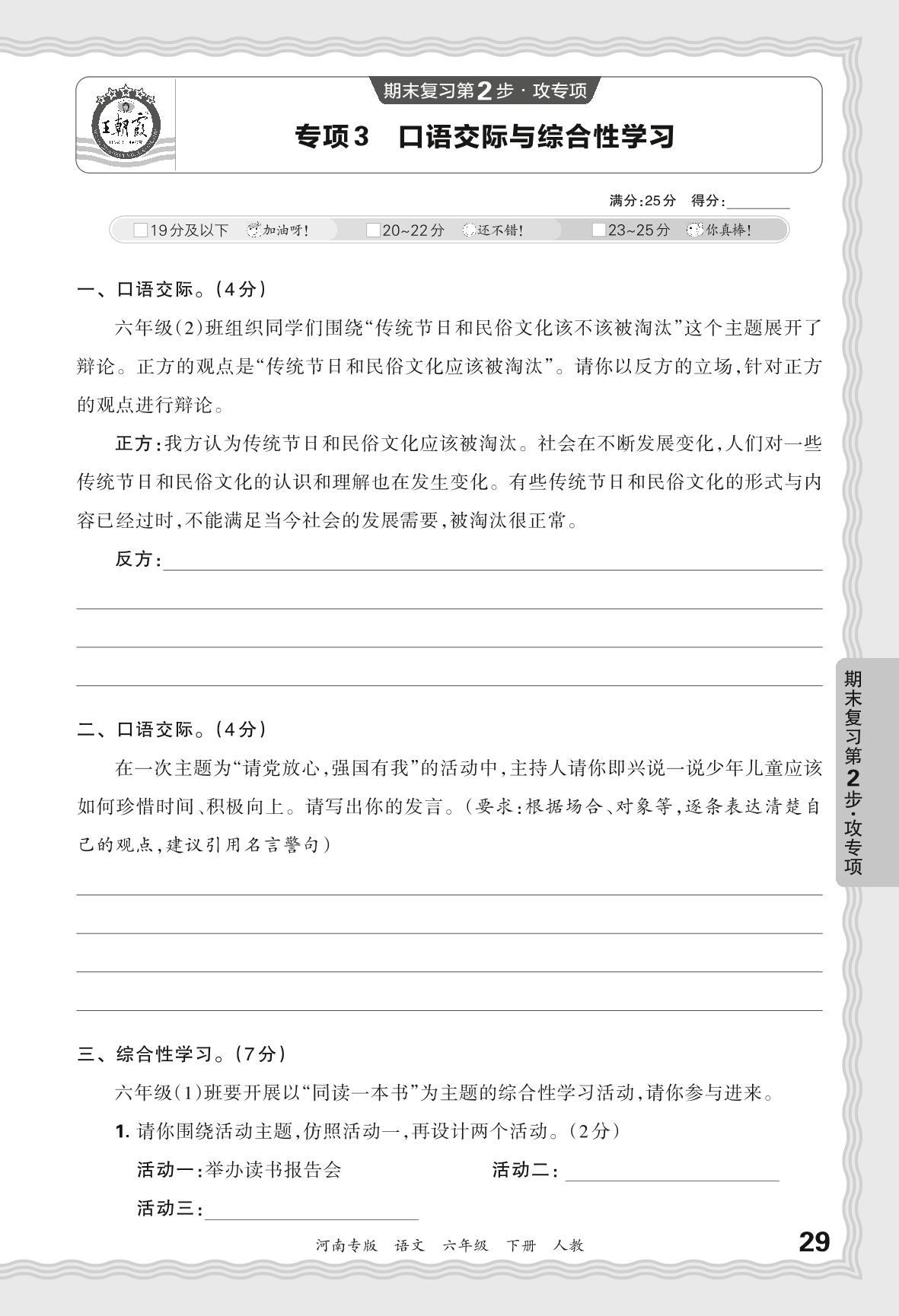 2024春下册六年级语文人教版 期末专项卷河南版·口语交际与综合性学习【3】
